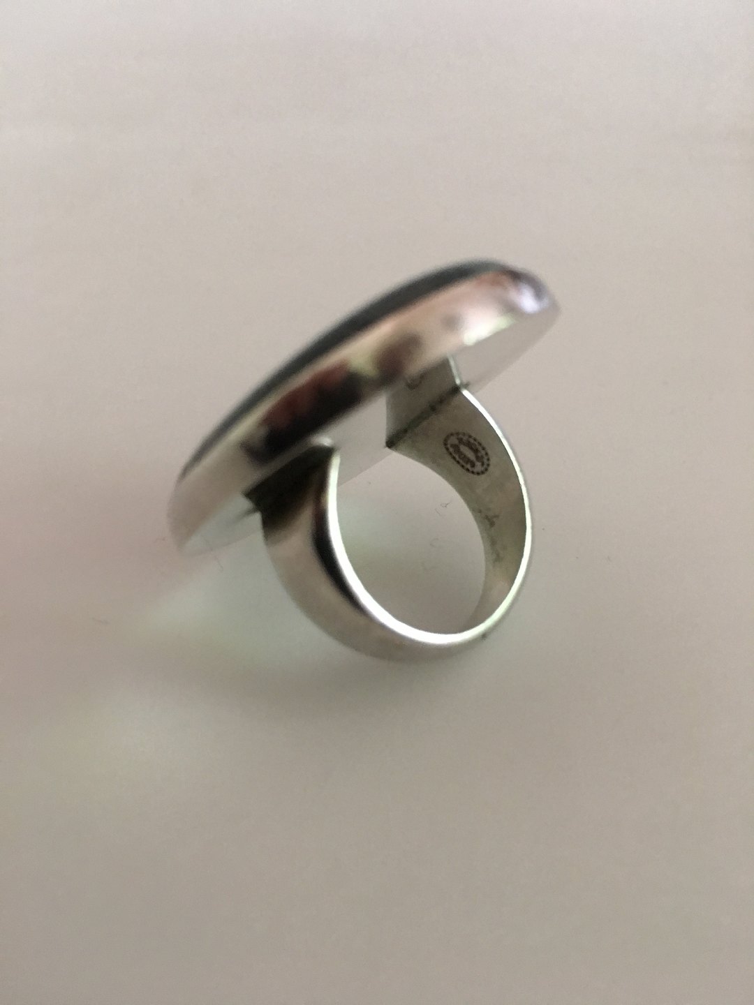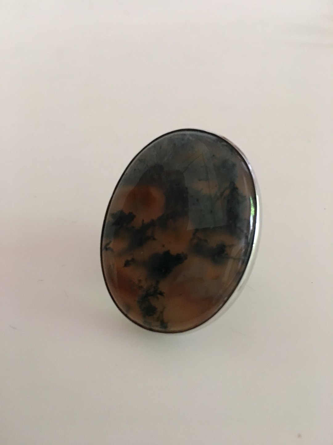 Georg Jensen Sterling Sølv Ring No 90D med Oval Orange og gråmeleret Sten. Ringstørrelse 48. Stenen måler 3,5 cm x 2,5 cm. Vejer 16 gram. Lavet efter 1945.