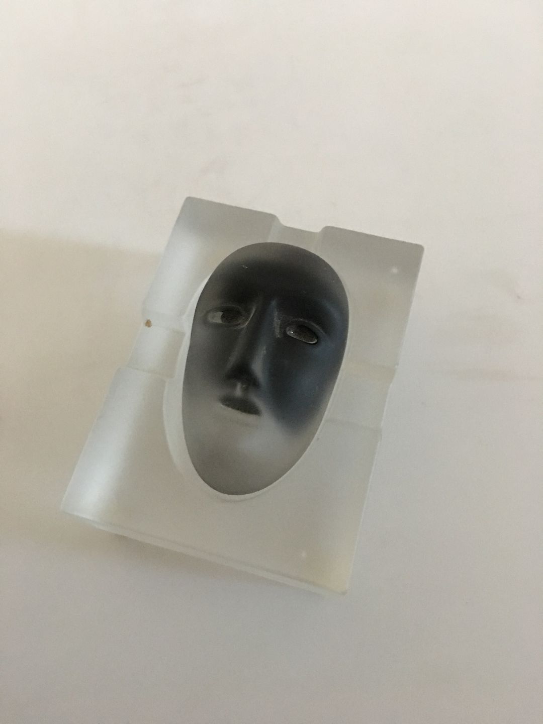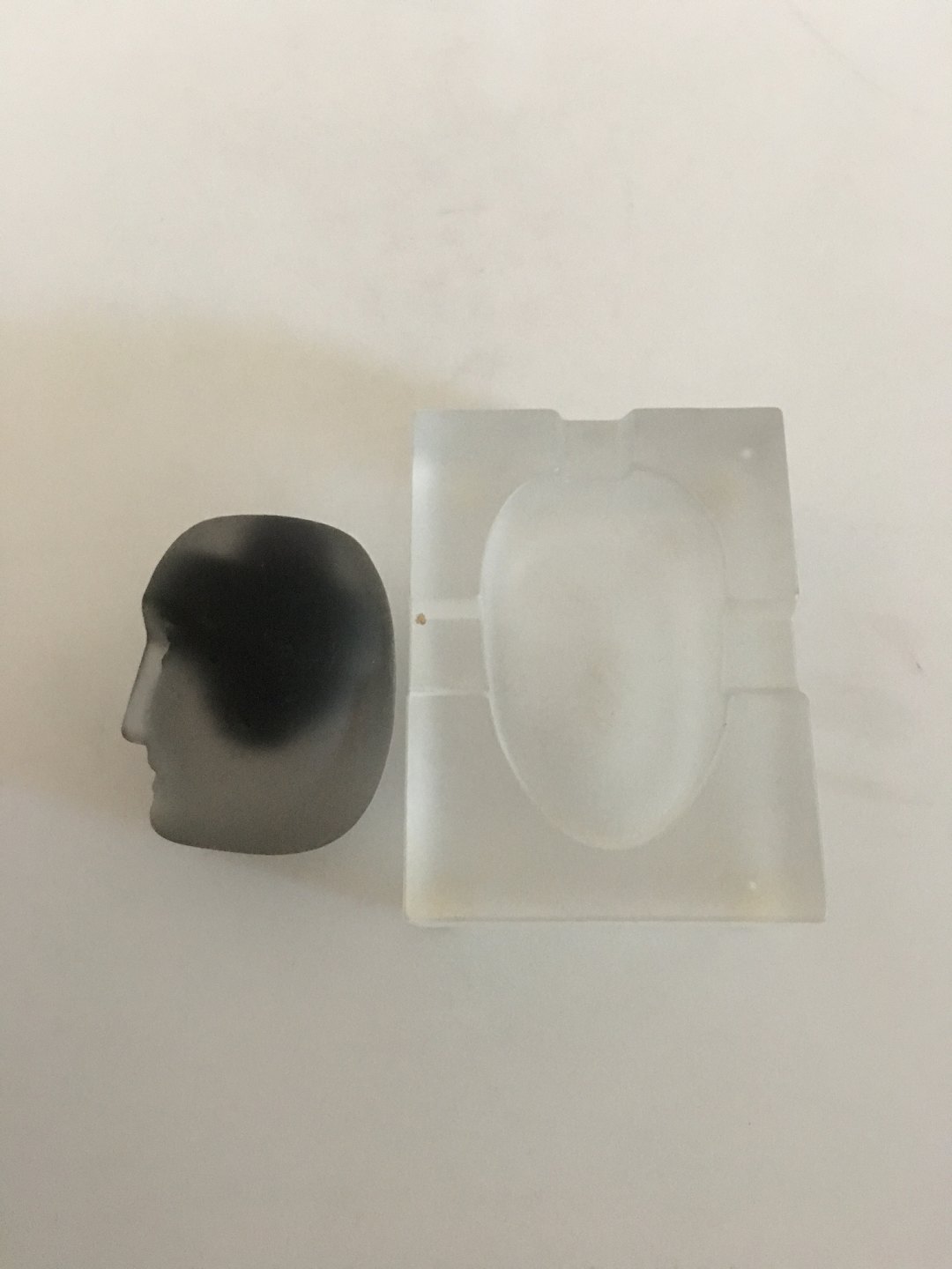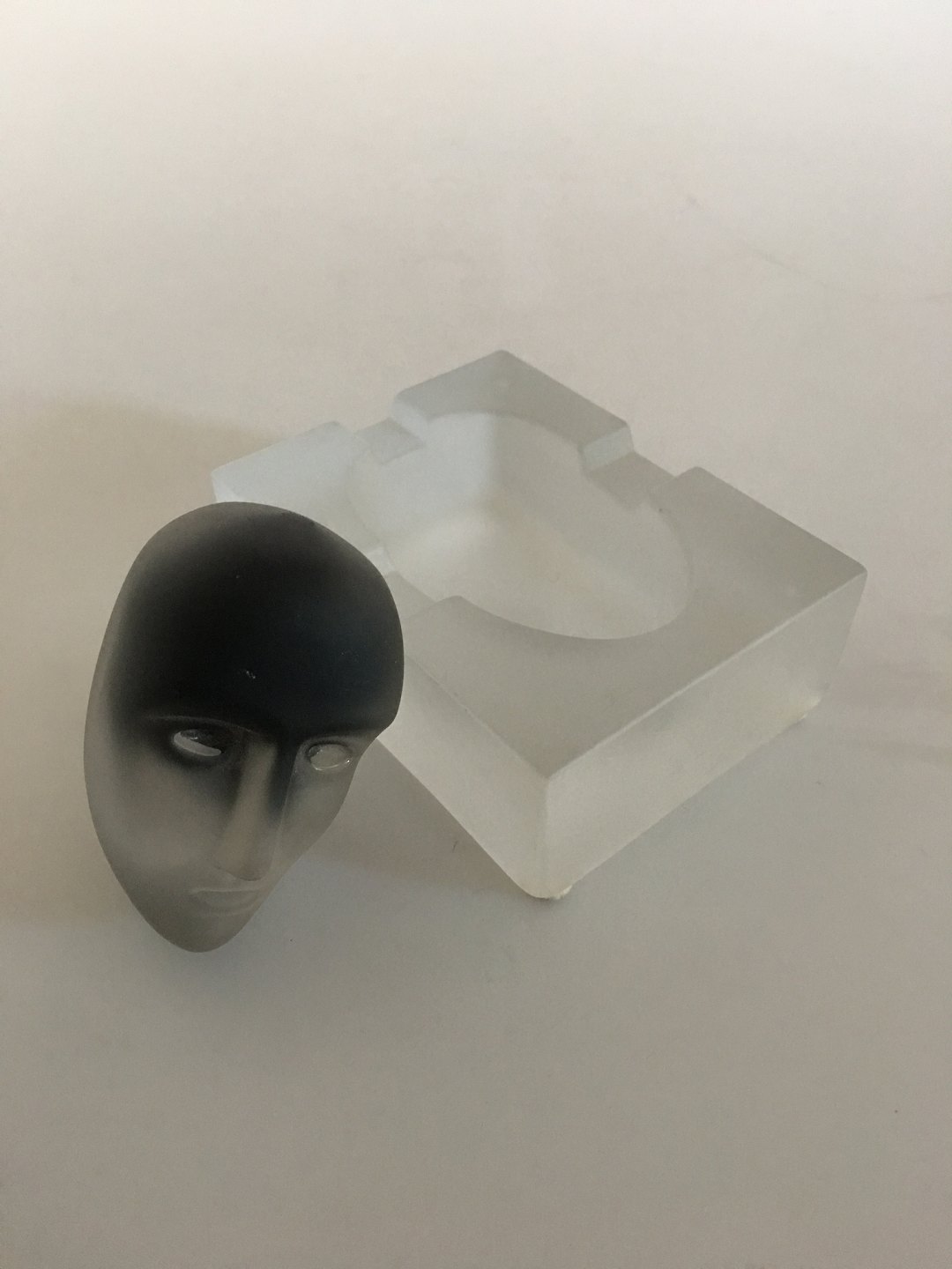 Bertil Vallien for Kosta Boda Todelt Glaskunst med Glas hoved og beholder (askebæger). Nummereret med 90035. I fin hel stand. 11 x 8 cm Bred. 4 cm Høj. Hovedet måler ca. 7 cm