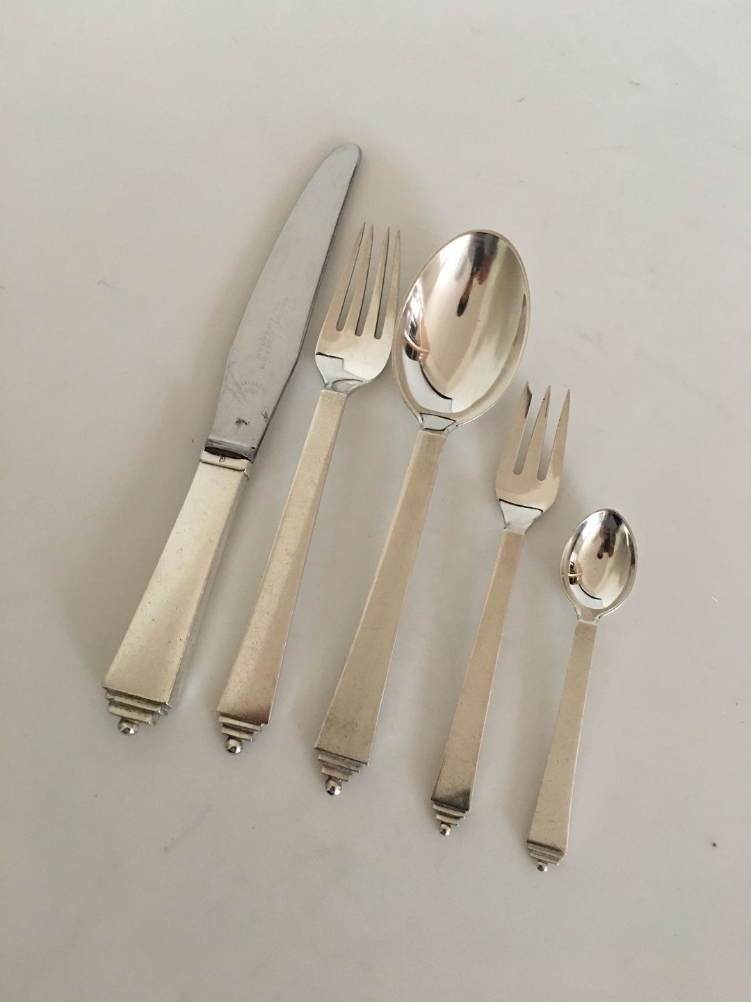 Georg Jensen "Pyramide" Sterling Sølv Bestik Sæt til 8 Pers. 40 Dele. Sættet består af følgende dele;