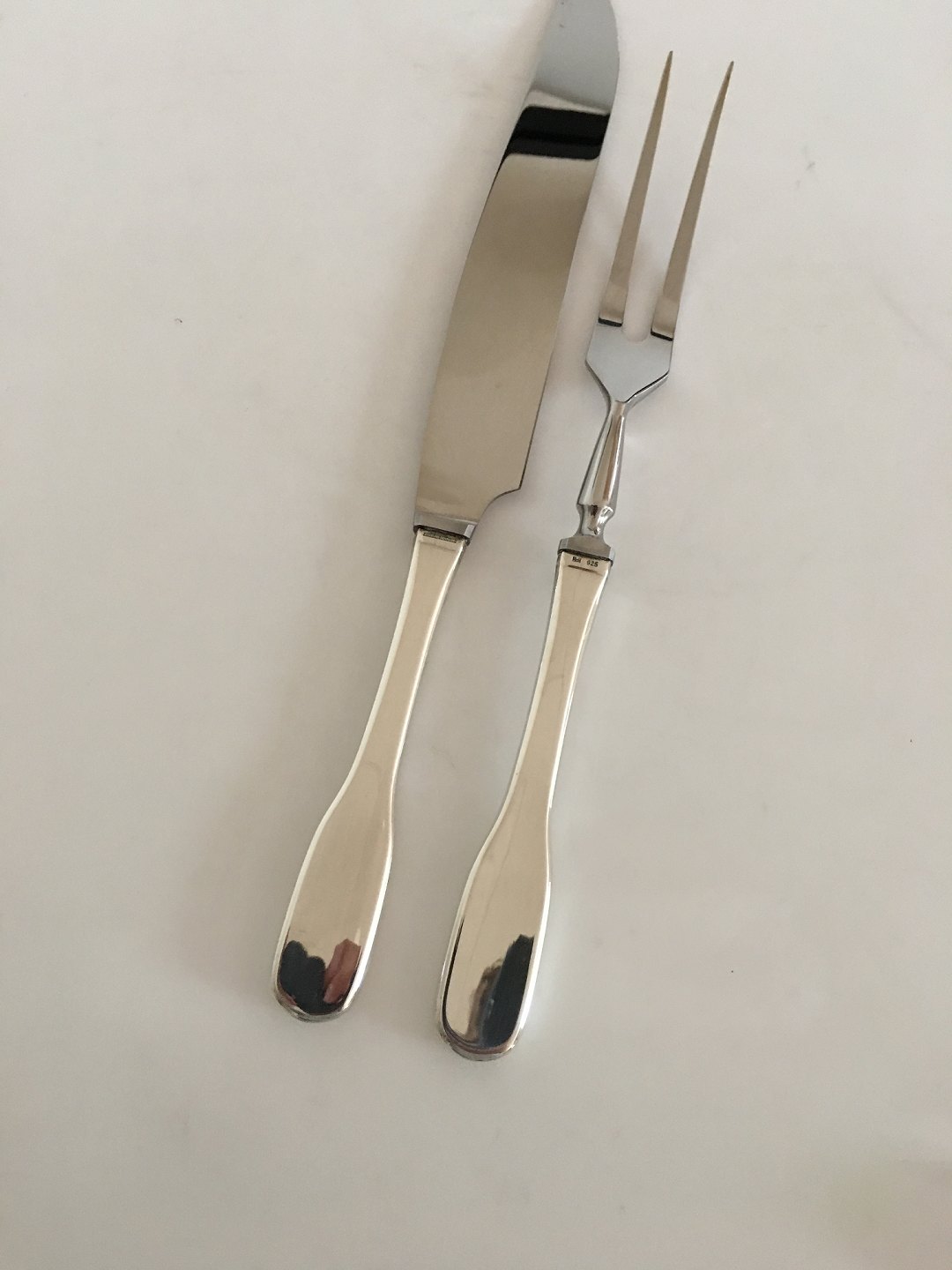 Hans Hansen "Susanne" Forskærer Sæt i Sterling Sølv og Stål. Kniv 31.5 cm L Gaffel 26.5 cm L. I flot stand