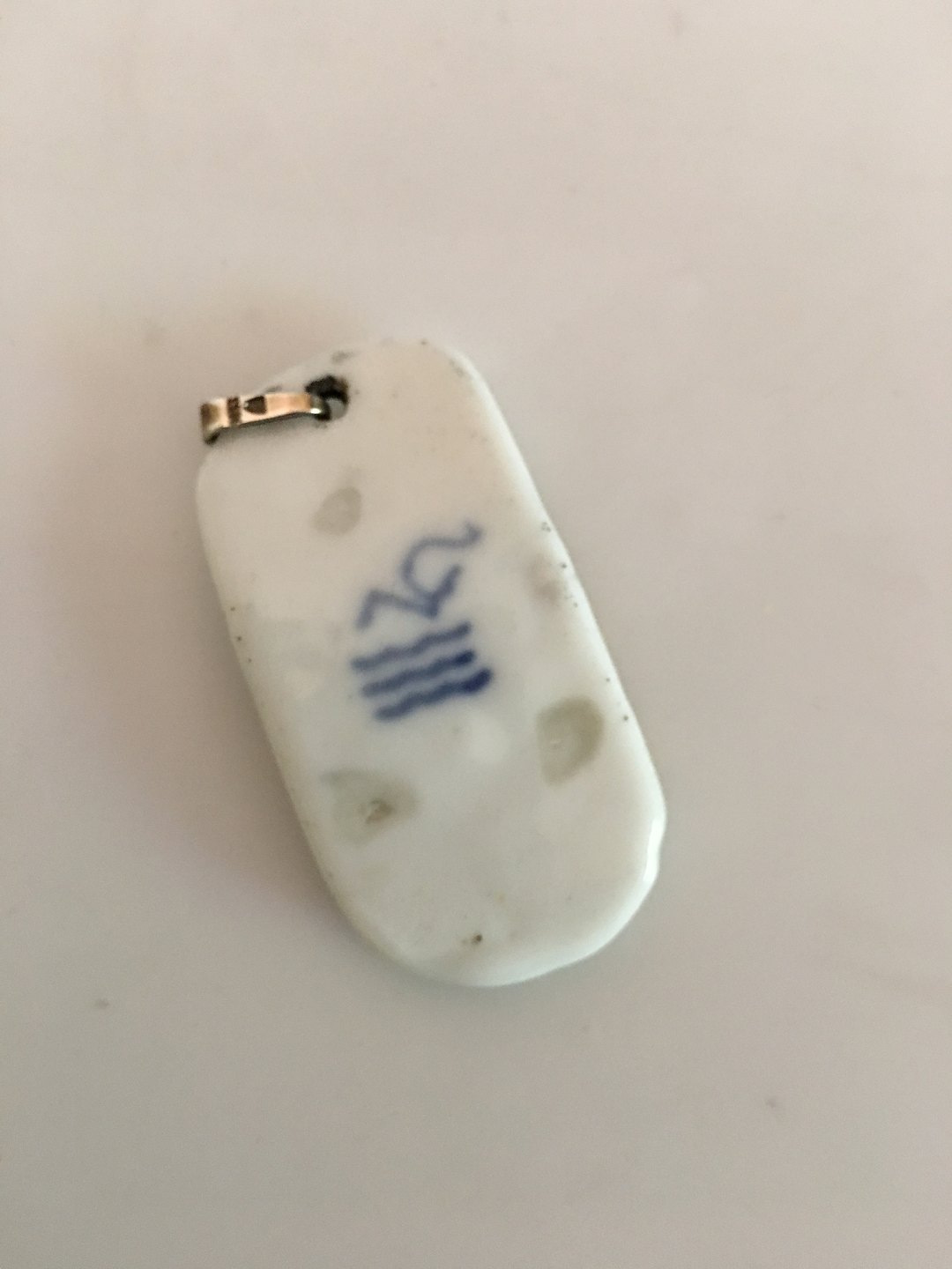 Royal Copenhagen Nils Thorsson Vedhæng. I hvid porcelæn med forgyldt motiv. I fin hel stand. Måler 5 x 2.8 cm