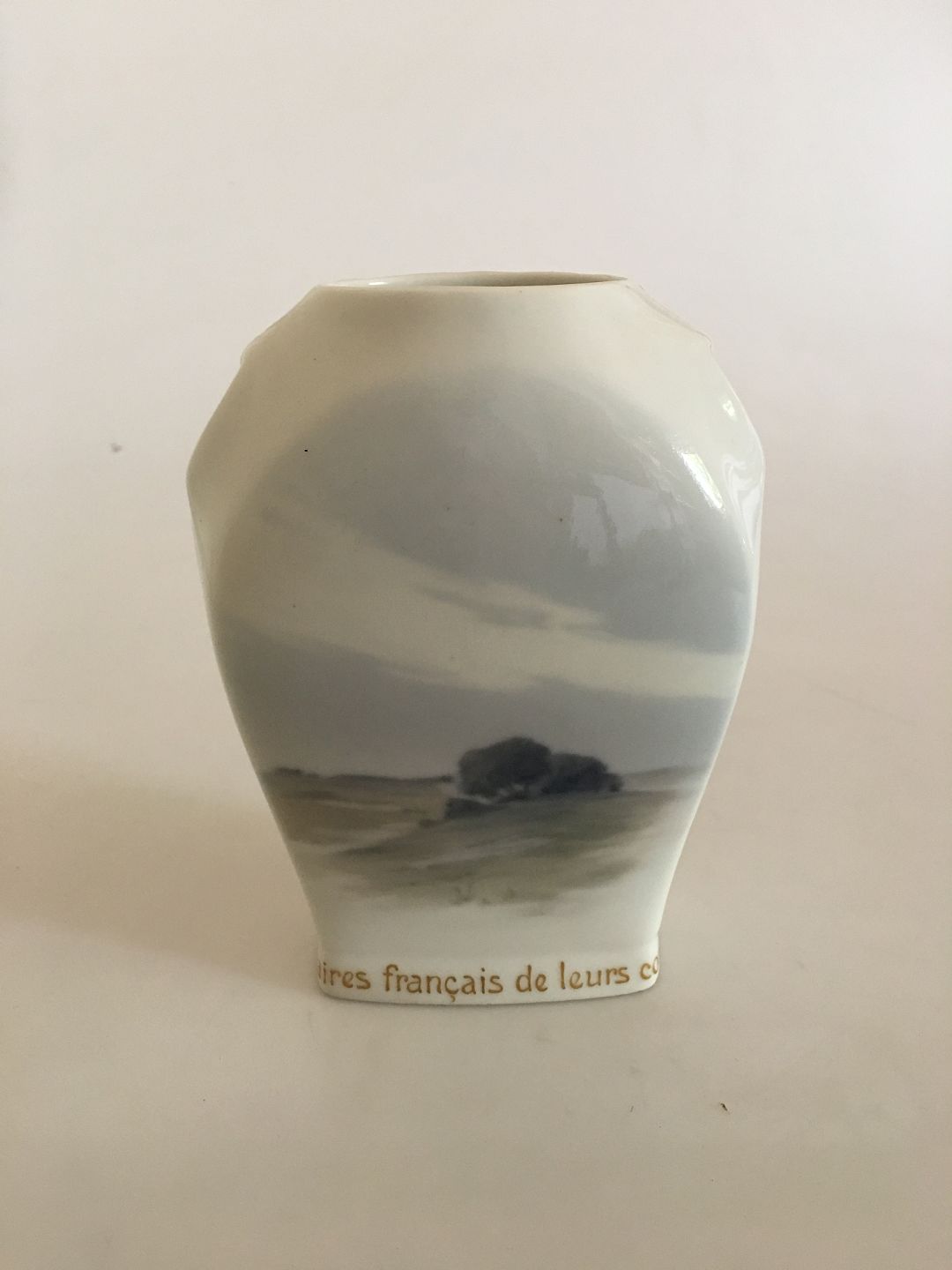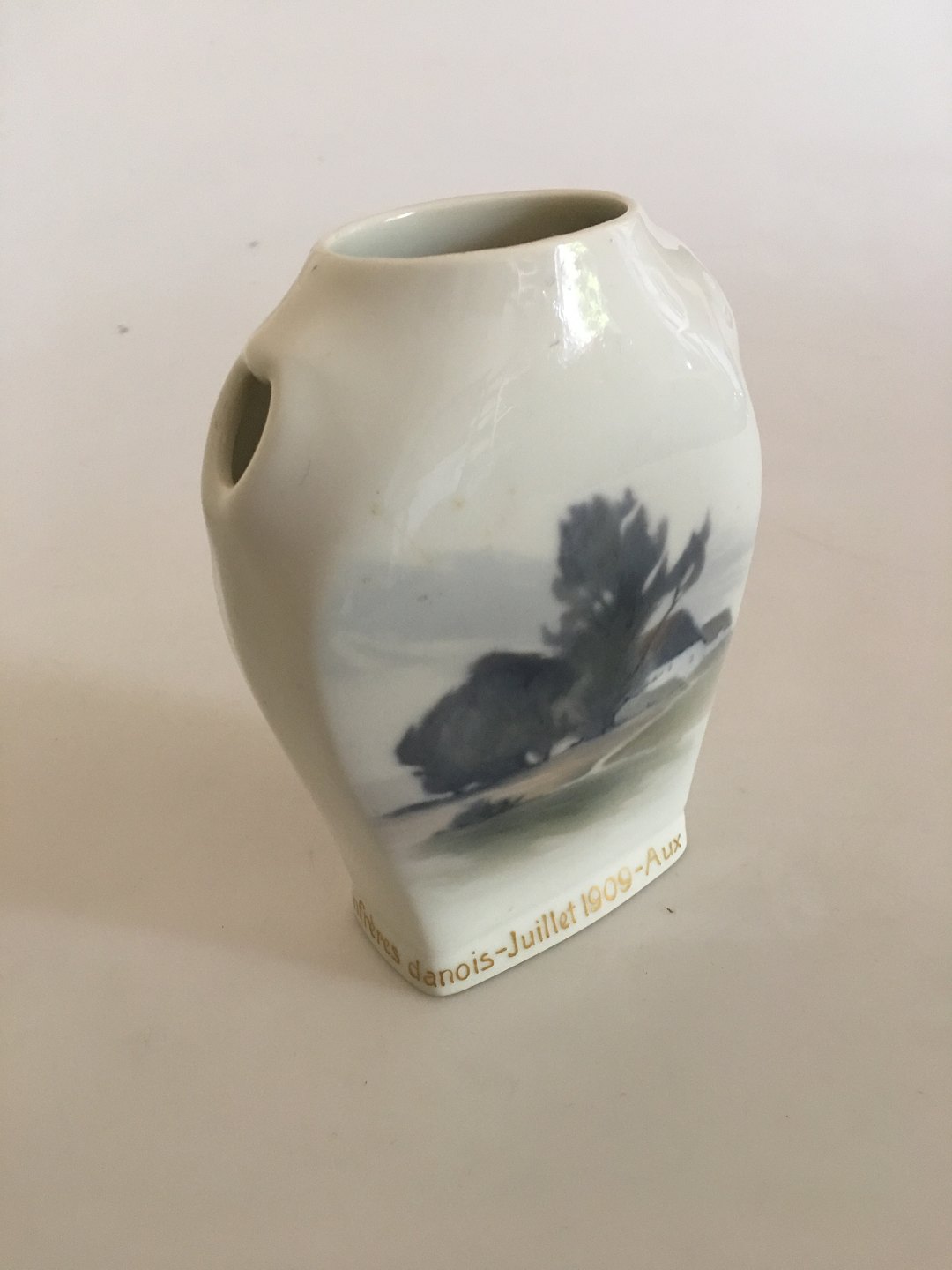 Bing & Grøndahl Art Nouveau Mindevase "Aux parlementaires francais de leurs confrères danois, Juillet 1909". B&G Stempel fra 1902-1914. 1. Sortering, fin hel stand 15 cm Høj. 11 cm Bred.