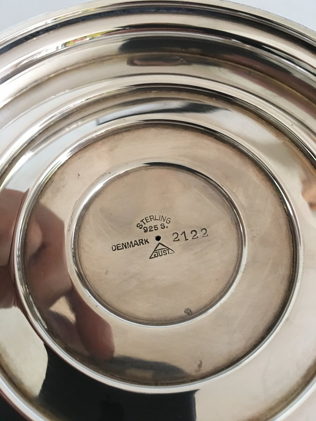 Just Andersen Sterling Sølv Lysestage No. 2122. 5.5 cm Høj. 13 cm dia. Passer til et lys med en diameter på små 4 cm. Vejer 197 gram.
