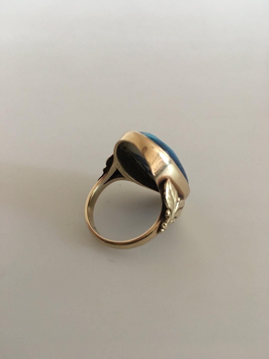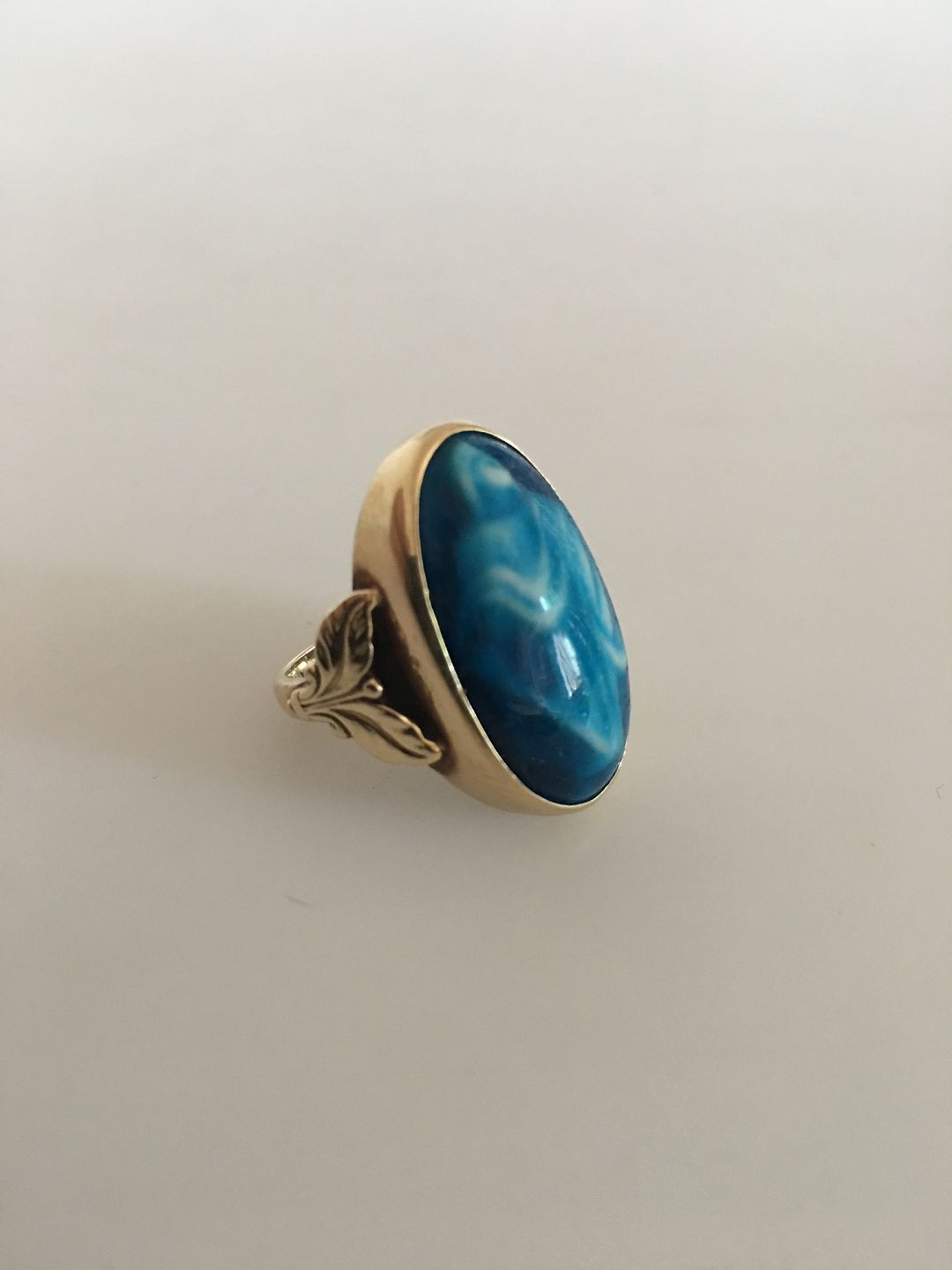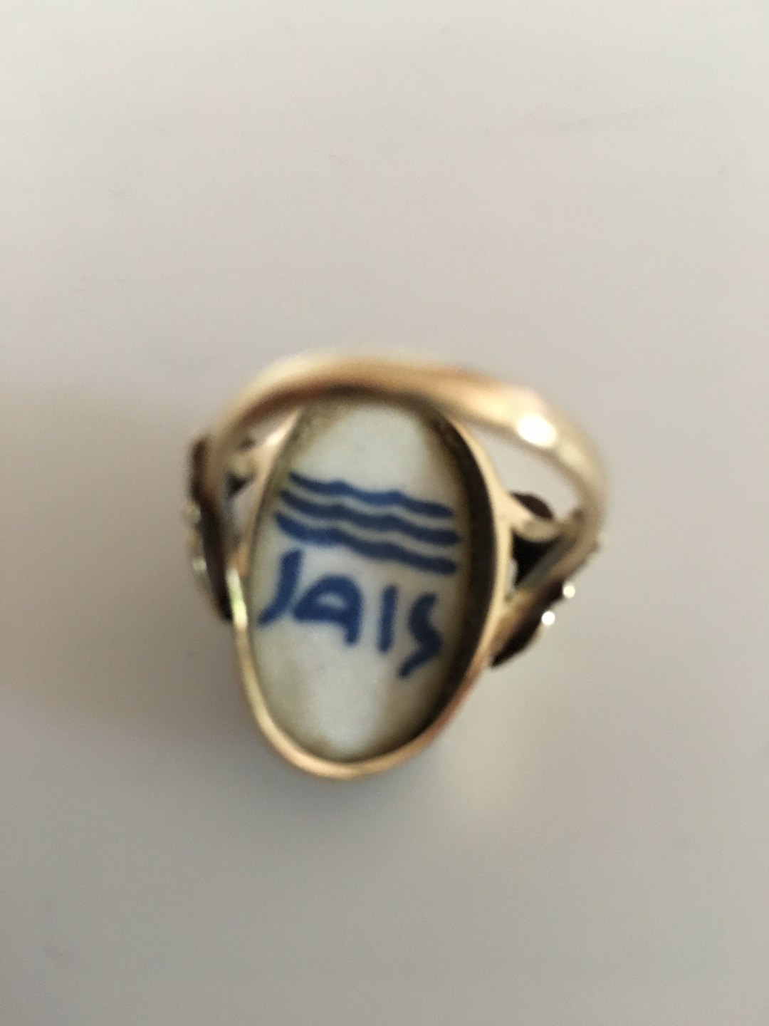 Royal Copenhagen / Anton Michelsen 14K Guld Ring med jais Nielsen Porcelæn Ornament. Str. 53. Ornamentet måler 2.5 cm. I fin stand.