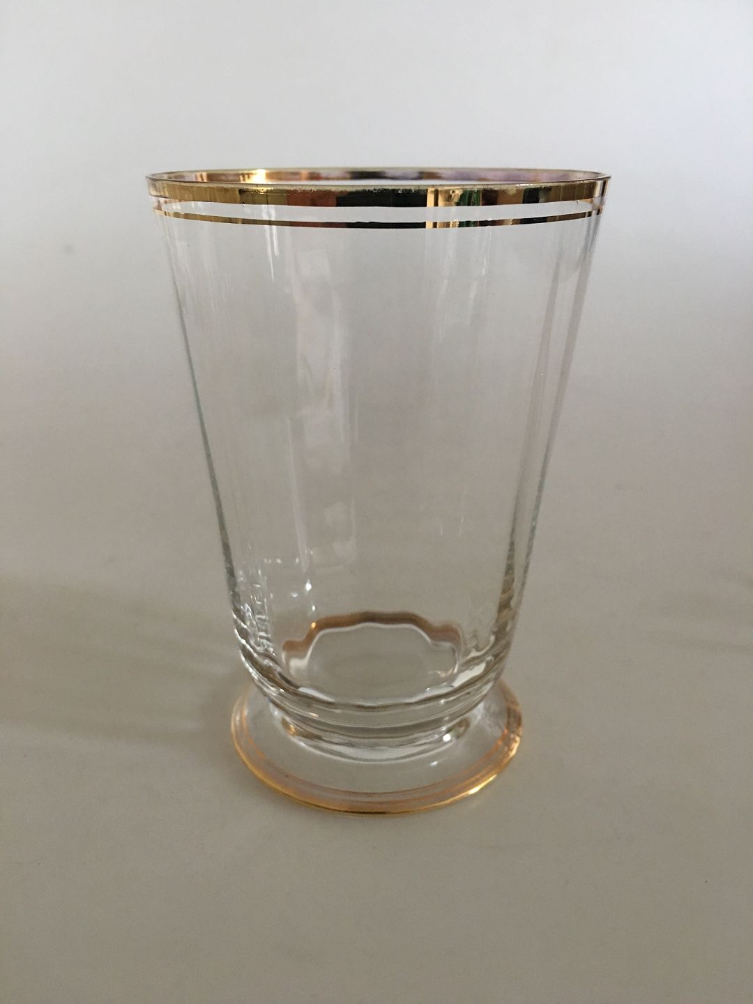 Holmegaard Ida Beer Glass with gold rim and base. Measures 11 cm / 4 21/64 in. High x 7.5 cm / 2 61/64 in. dia.