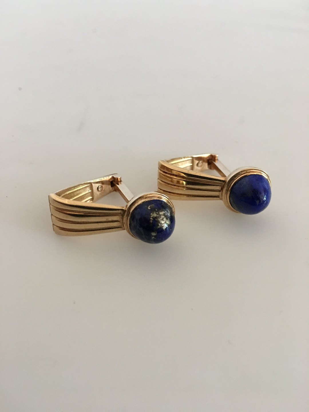 Ole Lynggaard 14K Guld Manchetknapper med Lapis Sten. Måler 2.5 cm. Vejer tilsammen 11 gram.