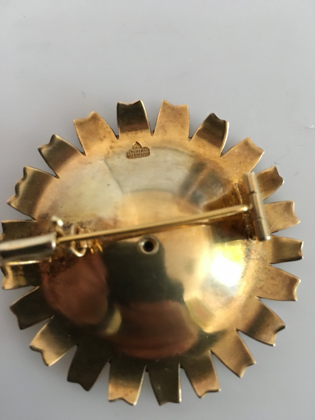 Anton Michelsen Margueritte Broche i Forgyldt Sterling Sølv og Hvid Emalje. Måler 5 cm diameter. Vejer 31,2 gram. I fin stand.