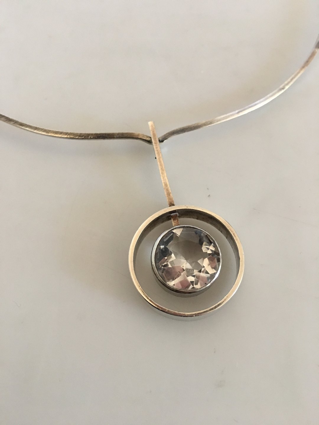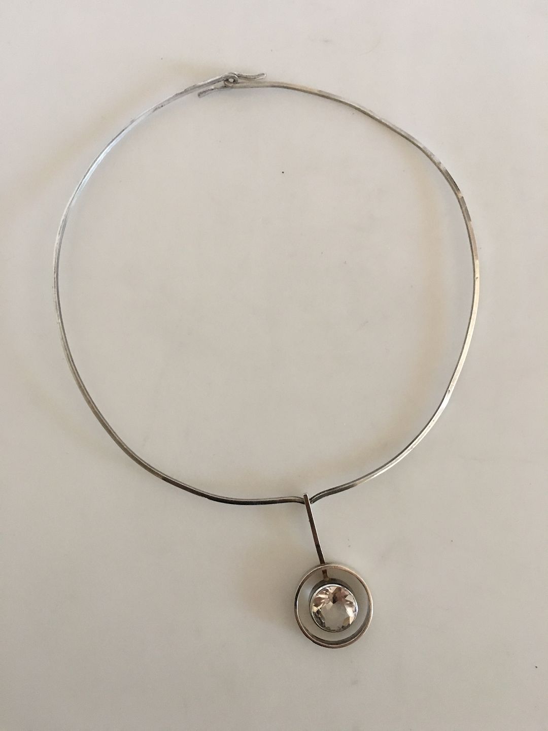 N.E. From Sterling Sølv Halskade med Kvarts Vedhæng. Har en diameter på 13 cm. Vedhæng måler 2,2 cm diameter. Vejer 15 g