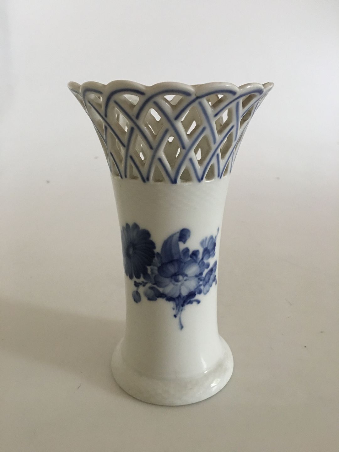 Royal Copenhagen "Blå Blomst Flettet" Vase med Blondekant. 17 cm Høj. I fin stand. Lille brændingsfejl.