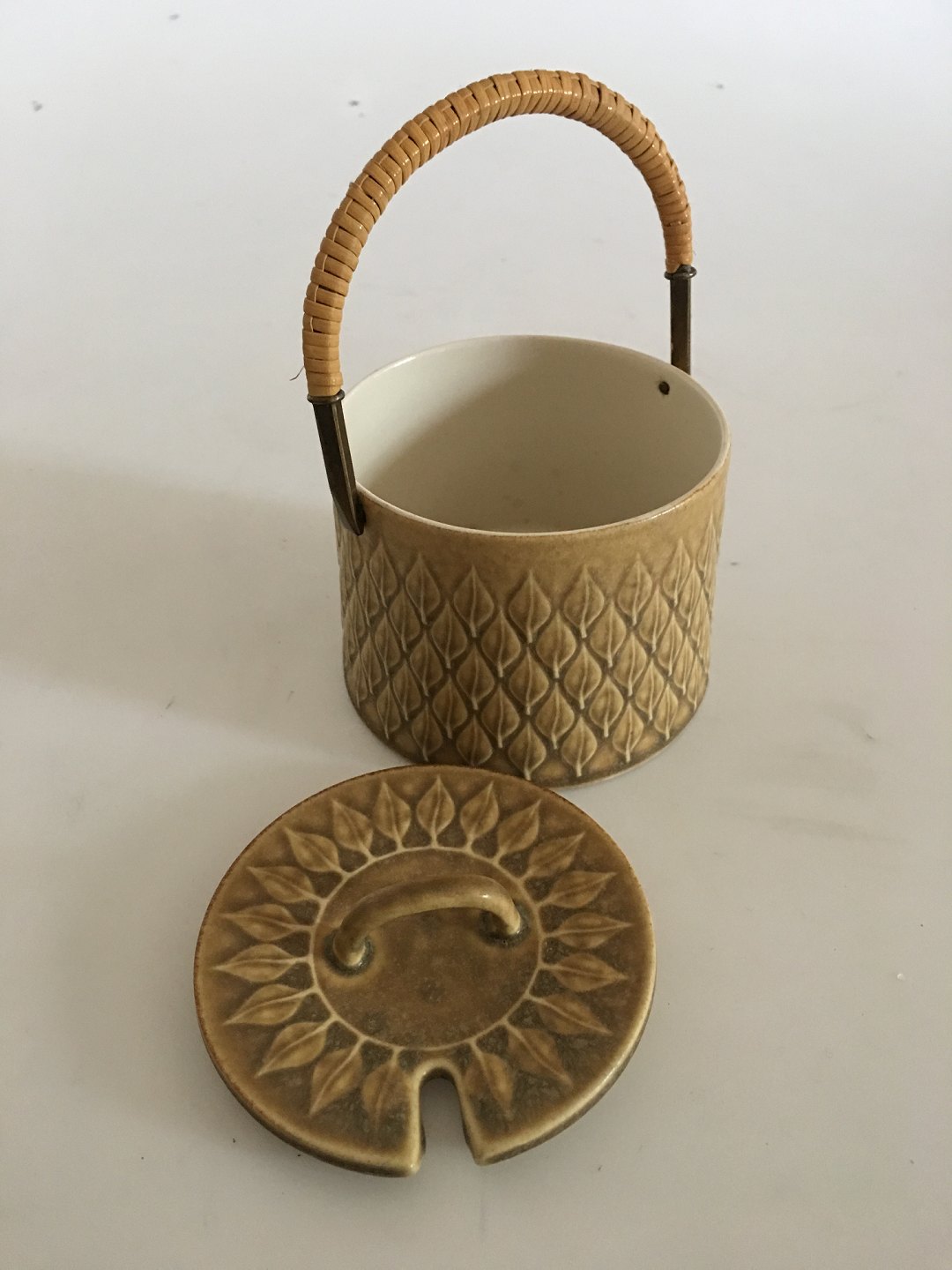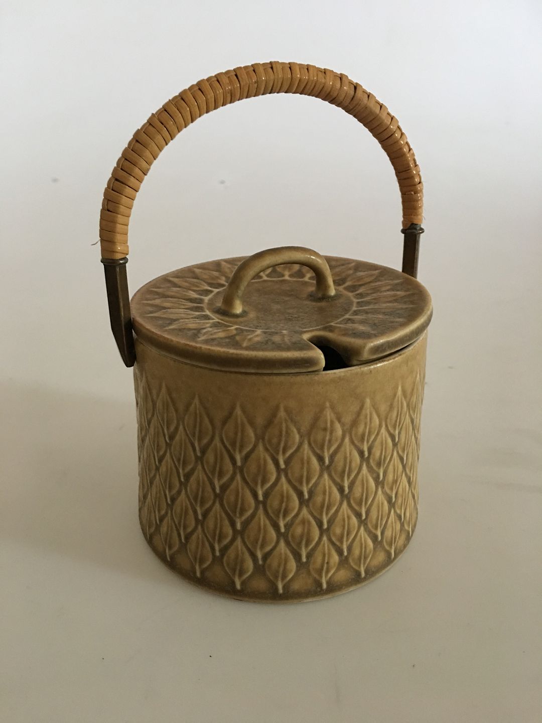 Bing and Grøndahl / Kronjyden - Relief Marmalade Jar with Lid and Handle. Ceramic stoneware by Jens Quistgaard.