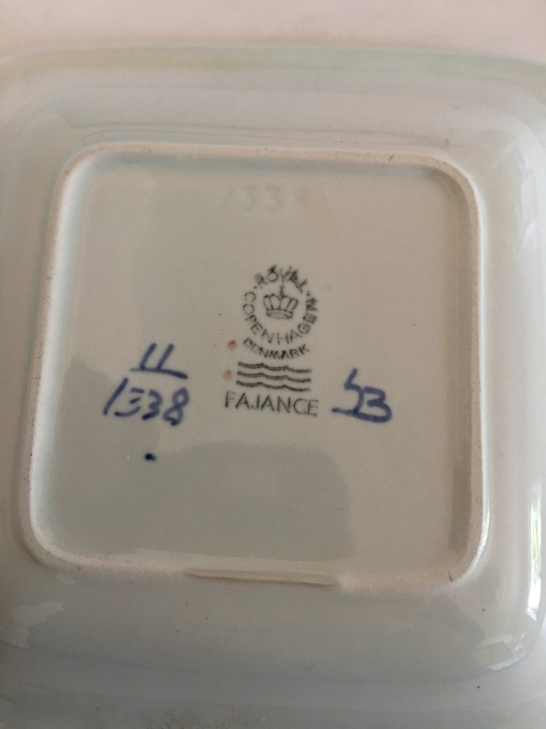 Royal Copenhagen Blå Tranquebar Firkantet Skål No. 1338. Måler 15 cm x 15 cm x 4 cm Høj. I fin stand