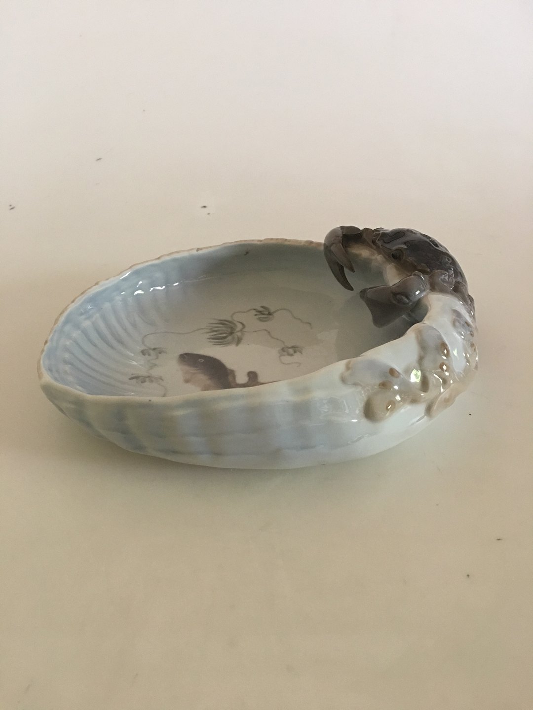 Royal Copenhagen Art Nouveau Skål med Krabbe No. 2465. 1. Sortering i fin hel stand. Måler ca. 25 x 20 cm.