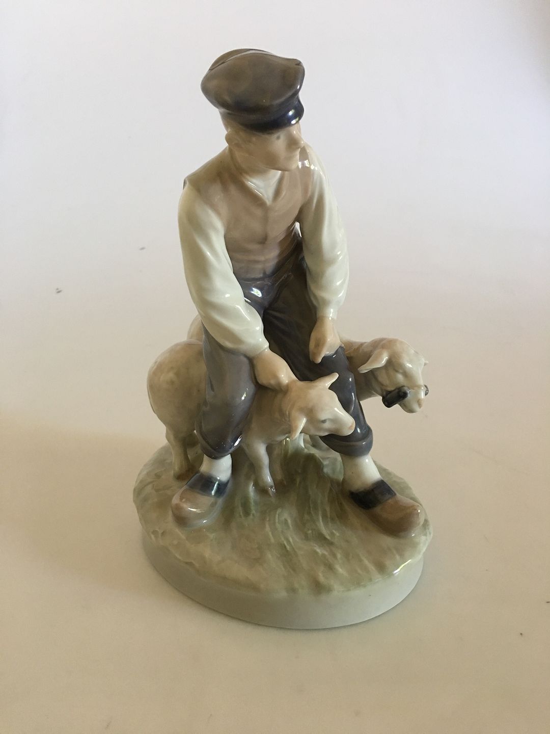 Royal Copenhagen Figur No. 627 Ung Mand med Får. Måler 19 cm (7 31/64 in.)
