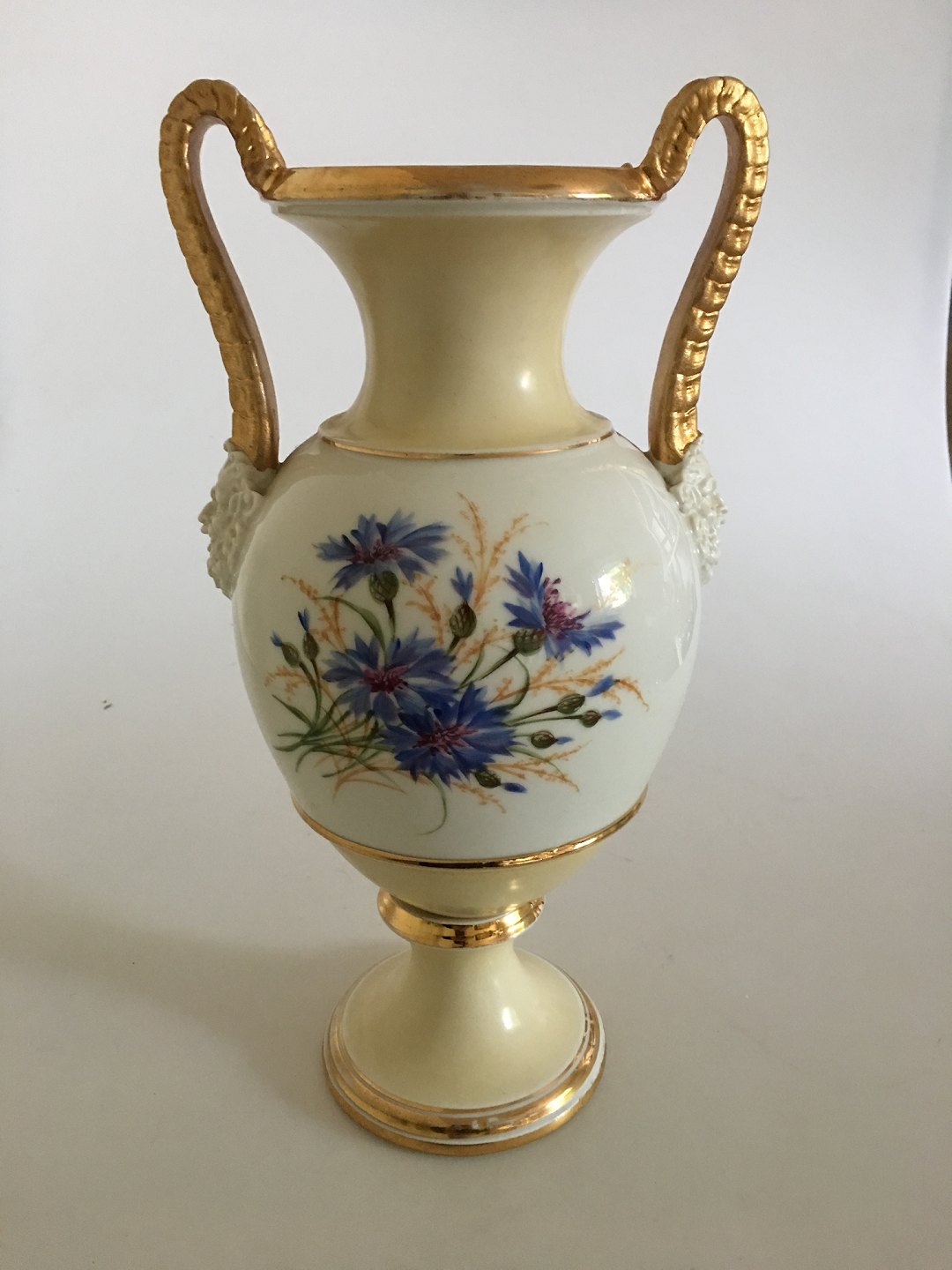 Bing & Grøndahl Tidlig vase med overglasur decoration og romersk/græske Bisque hoveder.