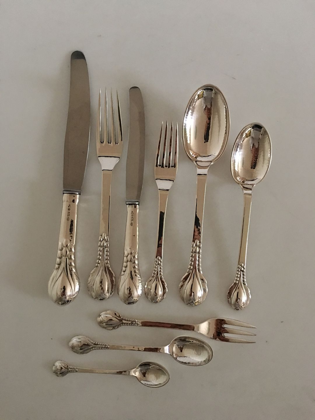 Evald Nielsen No. 3 Sølv Bestiksæt til 6 Pers. 47 Dele. Mangler en enkelt spisekniv. Sættet består af flg: