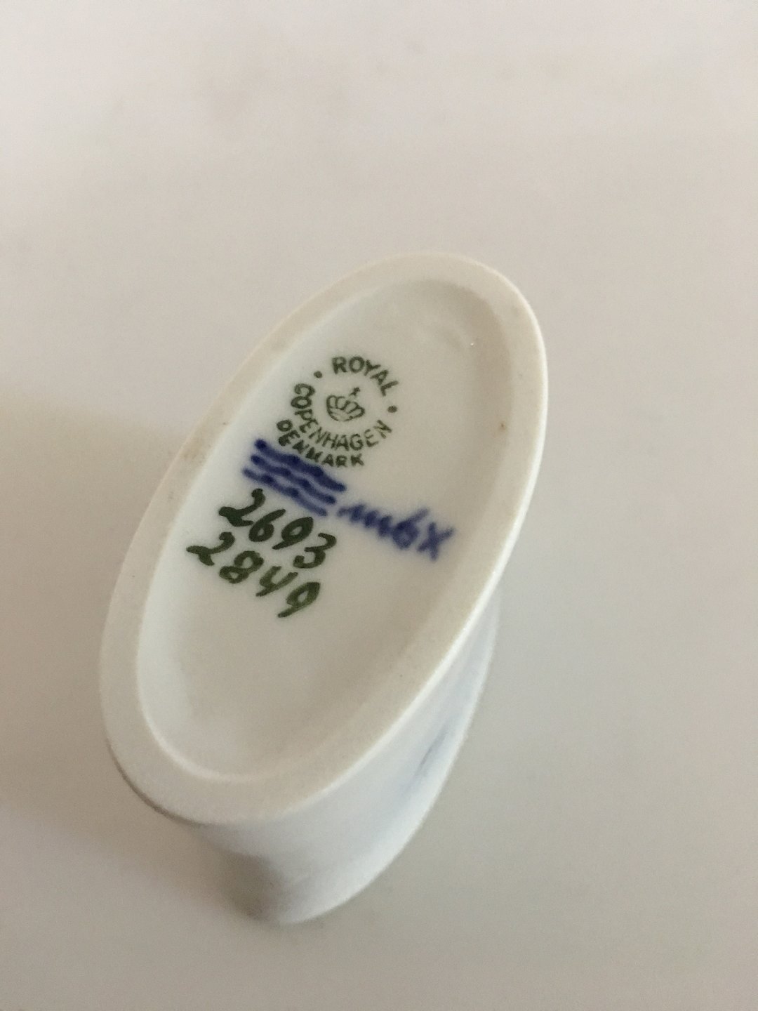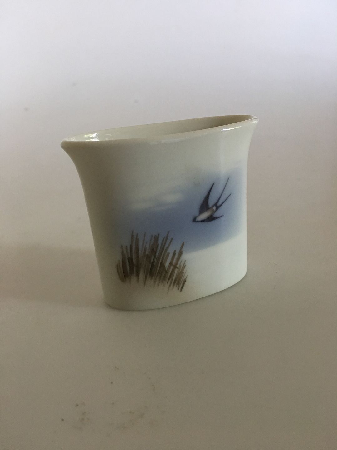 Royal Copenhagen Toothpick Holder with Swollows Motif No. 2693/2849. 6 cm H. 1st Quality, in perfect condition.