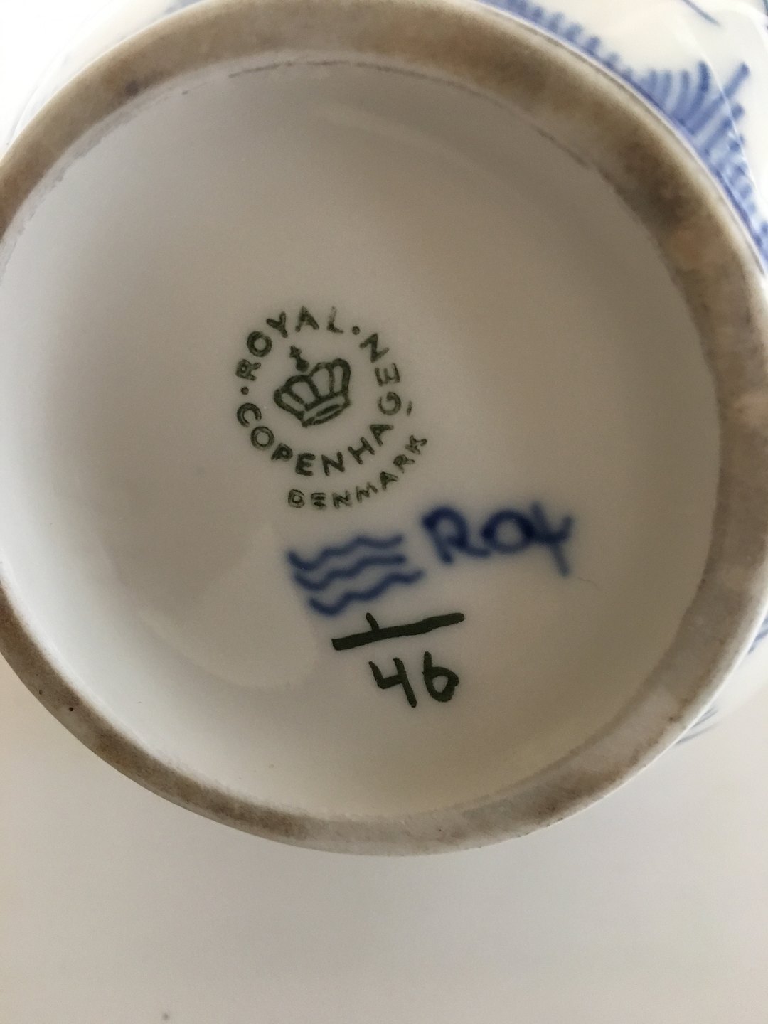 Royal Copenhagen Musselmalet Riflet Kaffekande No. 46 (uden låg). 17 cm Høj. 1. Sortering.