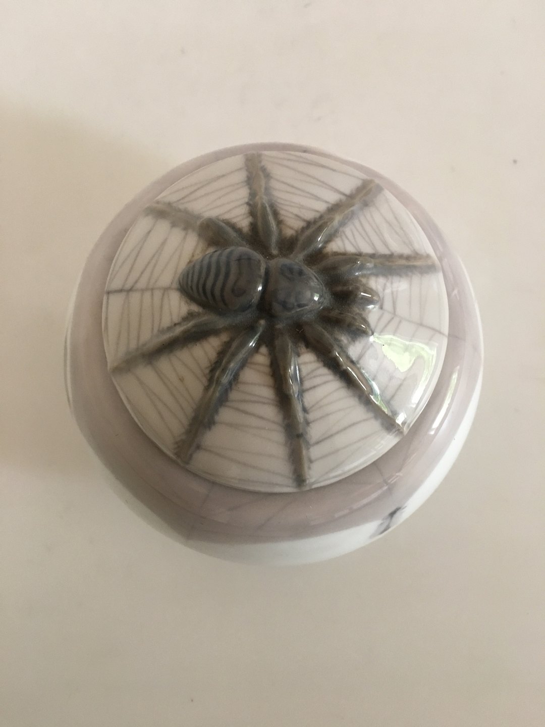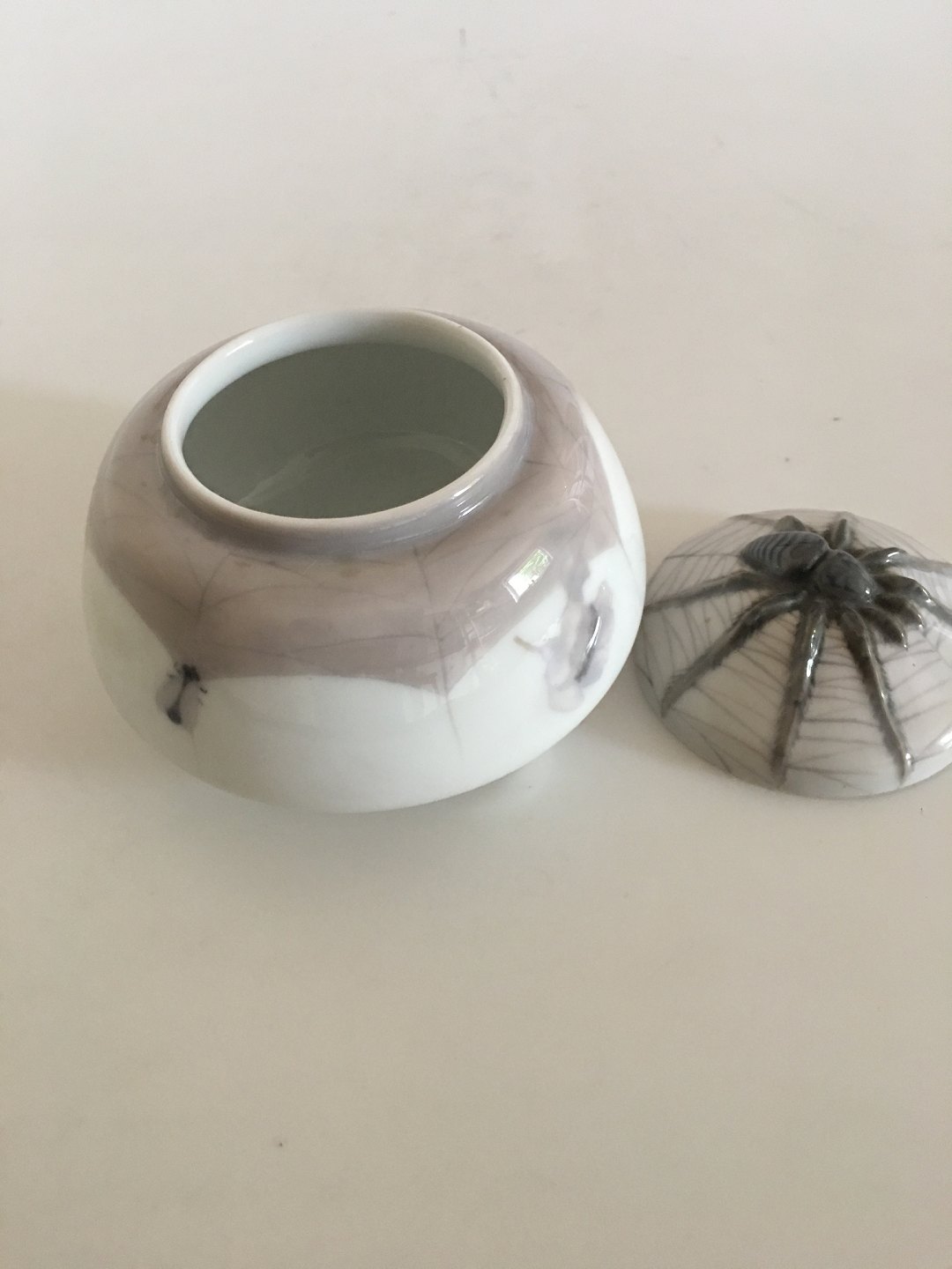 Royal Copenhagen Art Nouveau Lågskål med Fugleedderkop No. 317/24. 13 cm diameter. 10 cm Høj. 1. Sortering. Har en hårrevne i låget.