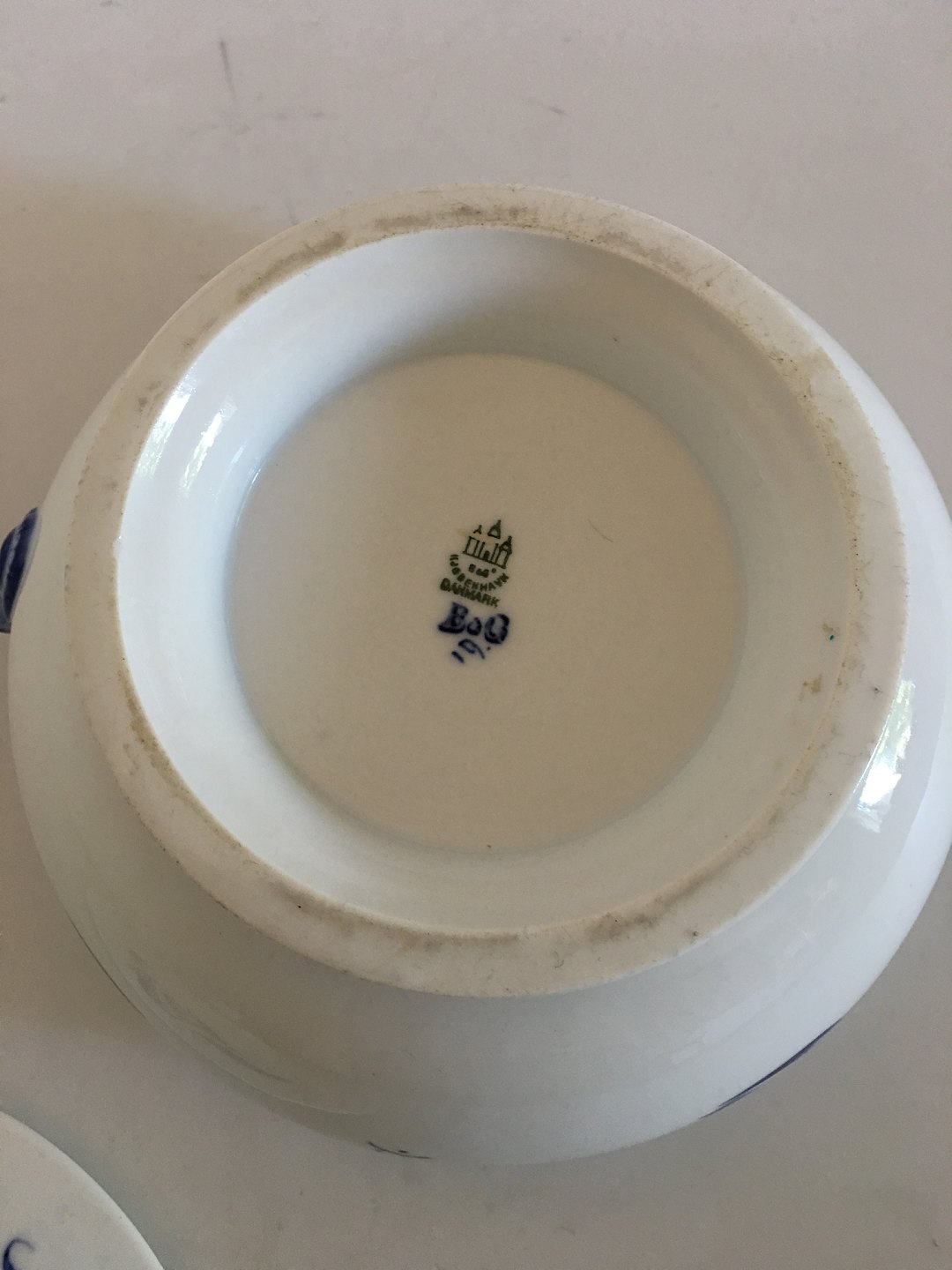 Bing & Grøndahl Jubilæumsstel / Blå Nellike Terrin. 22 cm diameter. I fin stand. Skabt af Hans Tegner i 1928. Bing & Grøndahls 75 Års Jubilæum.