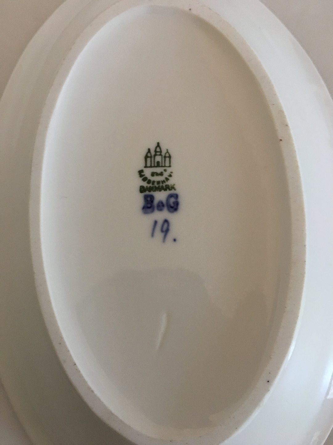 Bing & Grøndahl Jubilæumsstel / Blå Nellike Oval Skål. 23.5 x 15.5 cm. I fin stand. Skabt af Hans Tegner i 1928, B&Gs 75 års jubilæum.