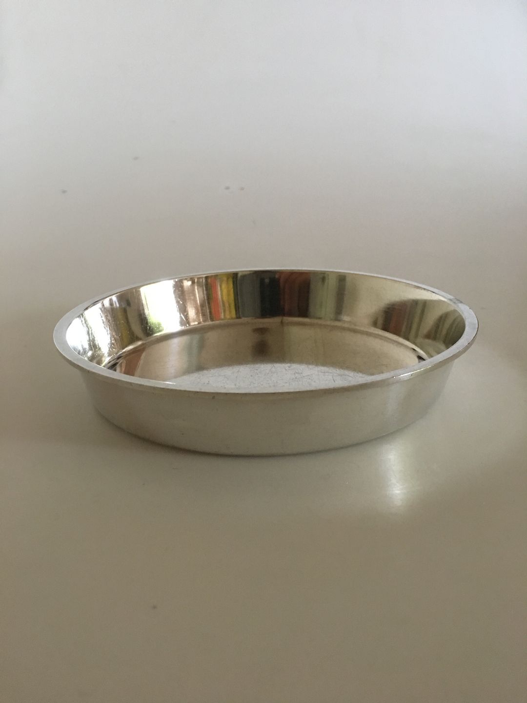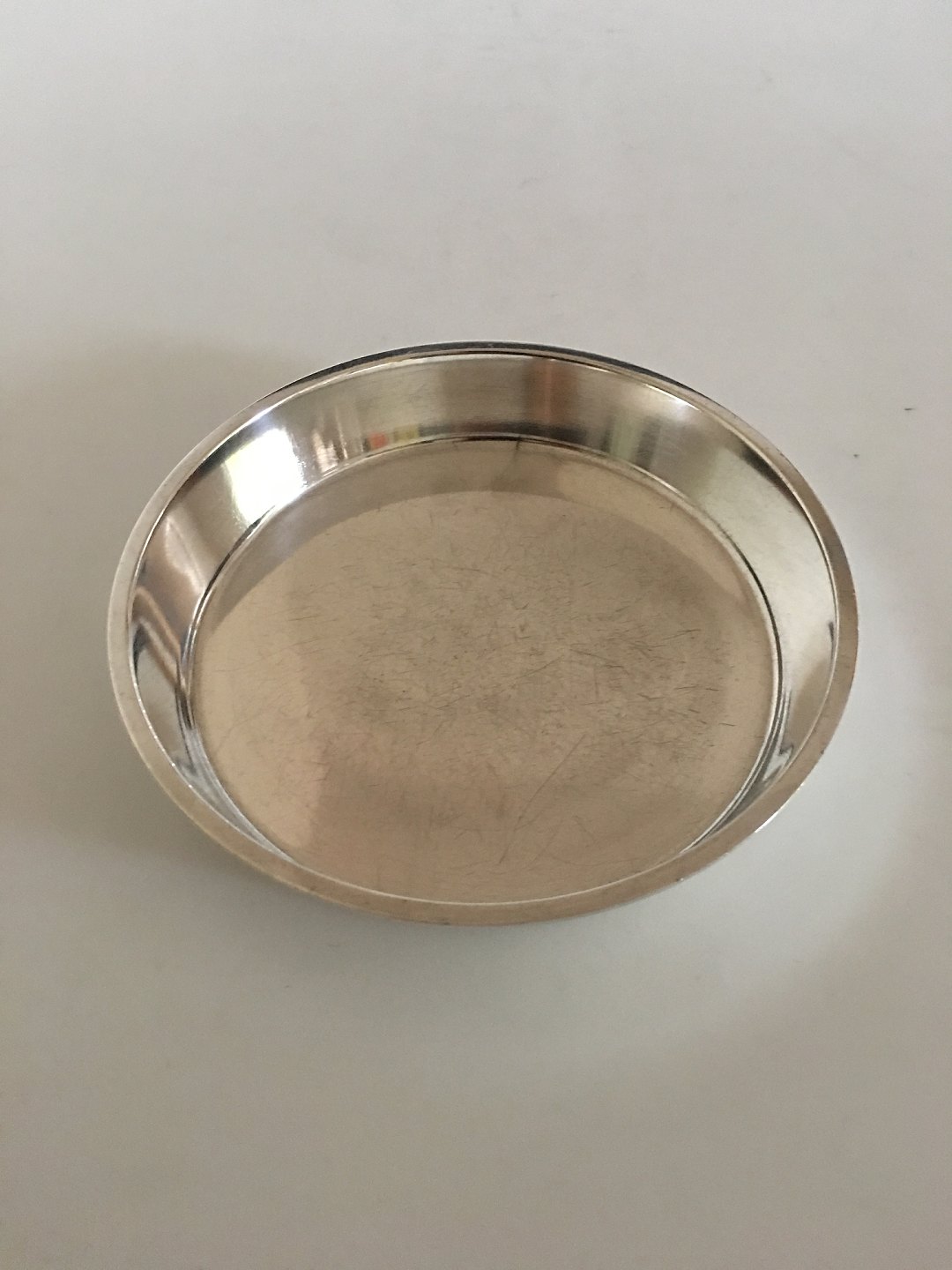 Georg Jensen Sterling Silver Bottle Tray No. 1109 designed by Erik Magnussen. Measures 15 cm diameter. 2.5 cm H. Weighs 197 grams (6.95 oz). Manufactured after 1945.