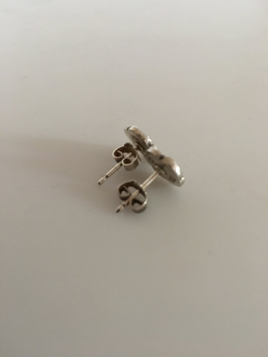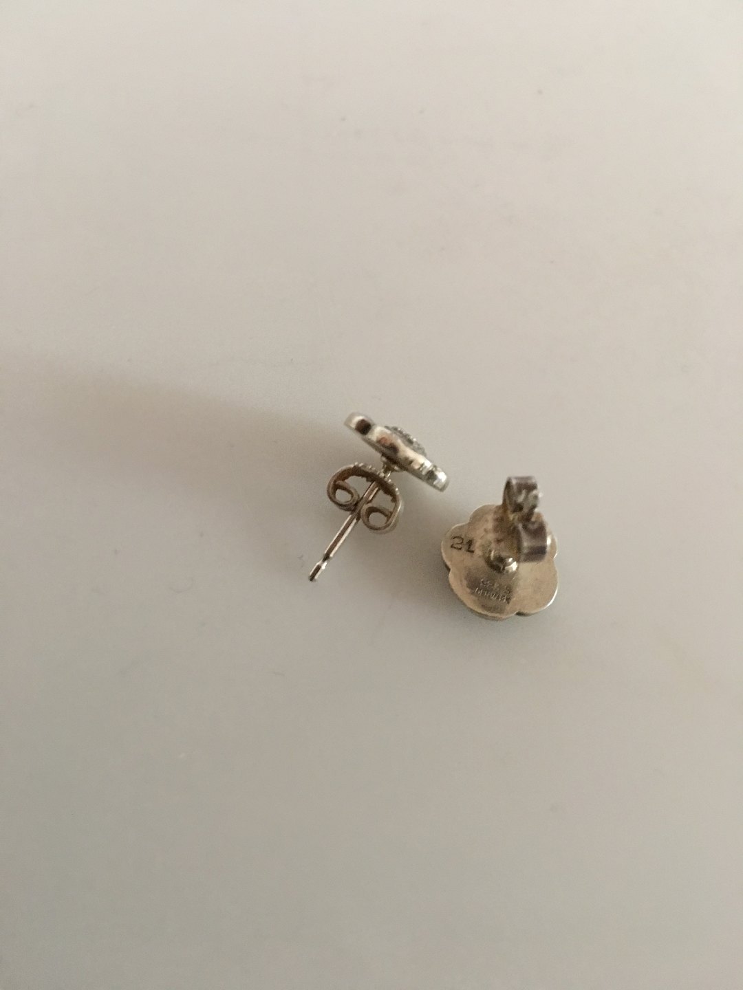 Georg Jensen Sterling Silver Flower Earsticks No. 21. Measures 0.8 cm diameter and weighs under 5 grams. Manufactured after 1945.