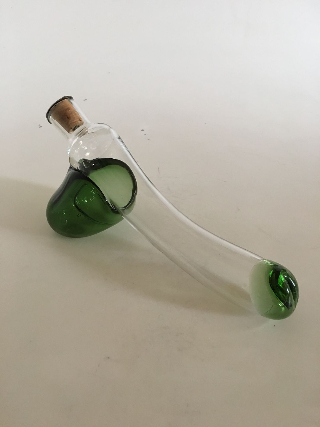 "Fallos" Decanter with Green Deco designed by Kurt Jensen for Holmegaard. 14 x 31 cm.