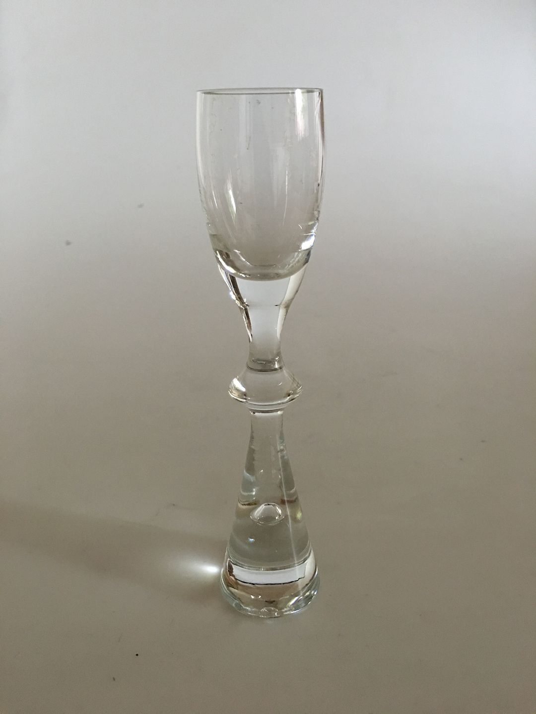 "Prince" Snapseglas fra Holmegaard. 16.5 cm H. Designet af Bent O. Severin i 1957 for Kastrup Glas. Produceret af Holmegaard fra 1968.