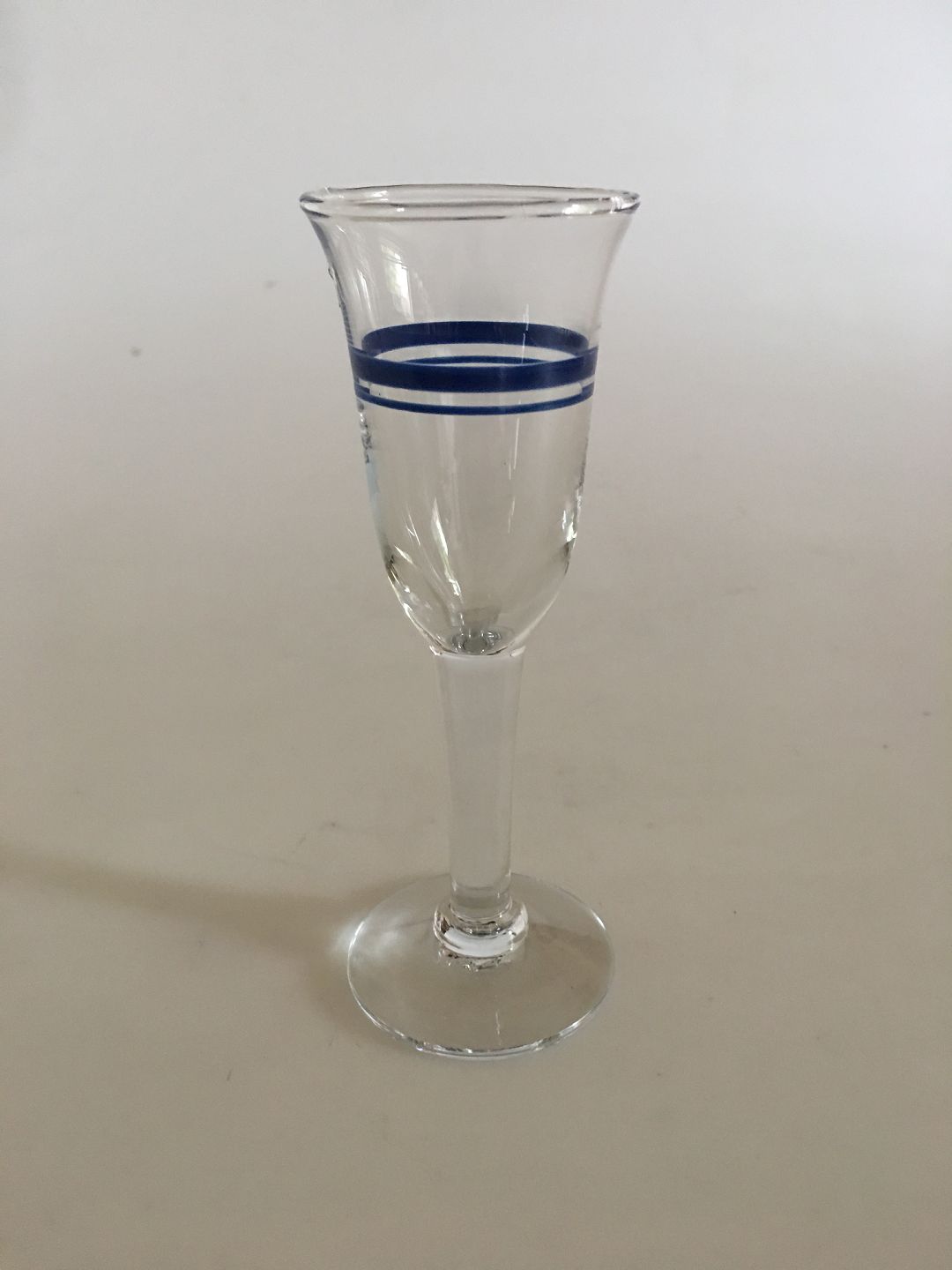 "Blåklokke" Snapsglas fra Holmegaard. 13.6 cm Høj. Designet af Ole Winther i 1974.