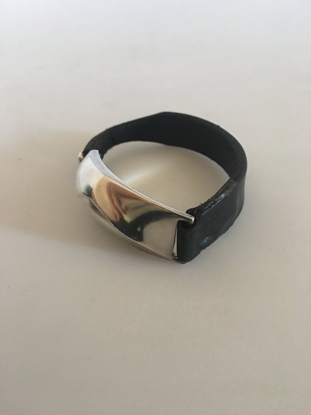 Lapponia Finland Læder Armbånd Sterling Sølv. Måler 18 cm L. Sølvstykket måler 5,5 cm x 1,9 cm. Vejer 25 gram