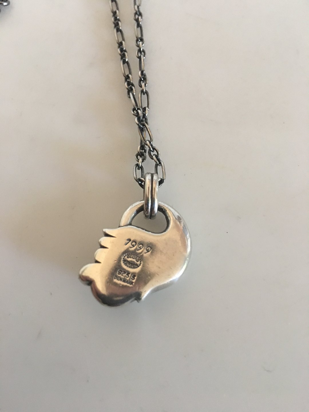 Georg Jensen Sterling Sølv 1999 Årsvedhæng med Rosakvarts og Kæde. Kæden måler 45 cm L. Vedhæng måler 2.1 cm. Vejer 14 gram.
