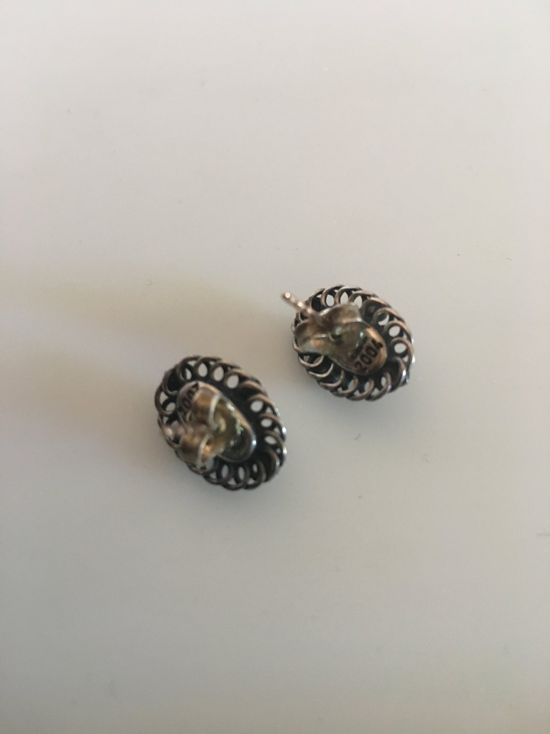 Georg Jensen Sterling Silver 2004 Annual Earrings with Black Onyx (Stickers). Measures 1.5 cm / 0 19/32 in. dia. Weighs 3.8 g / 0.13 oz.