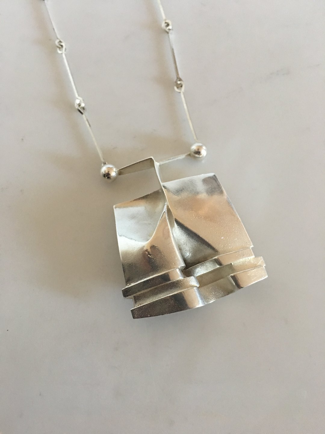 Lapponia Finland Sterling Sølv "02X" Halskæde, designet af Björn Weckström. 1970'erne. Kæden måler 72 cm. Kvadratisk vedhæng måler 6 cm x 5 cm. Vejer 54 gram.