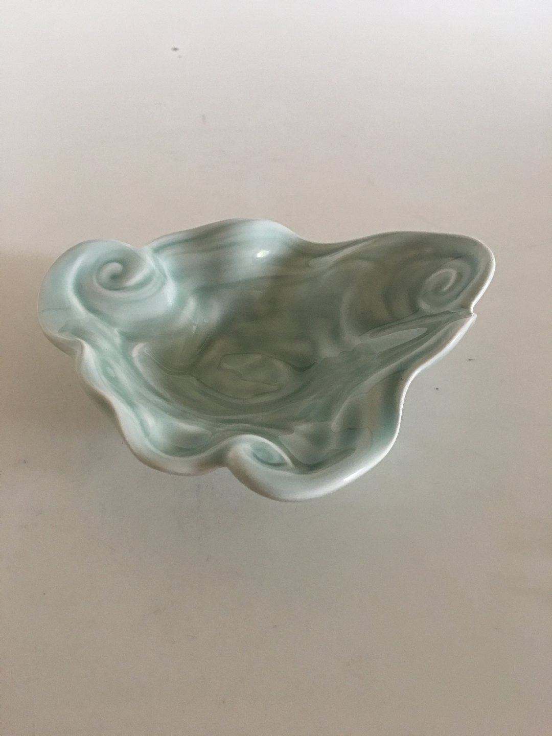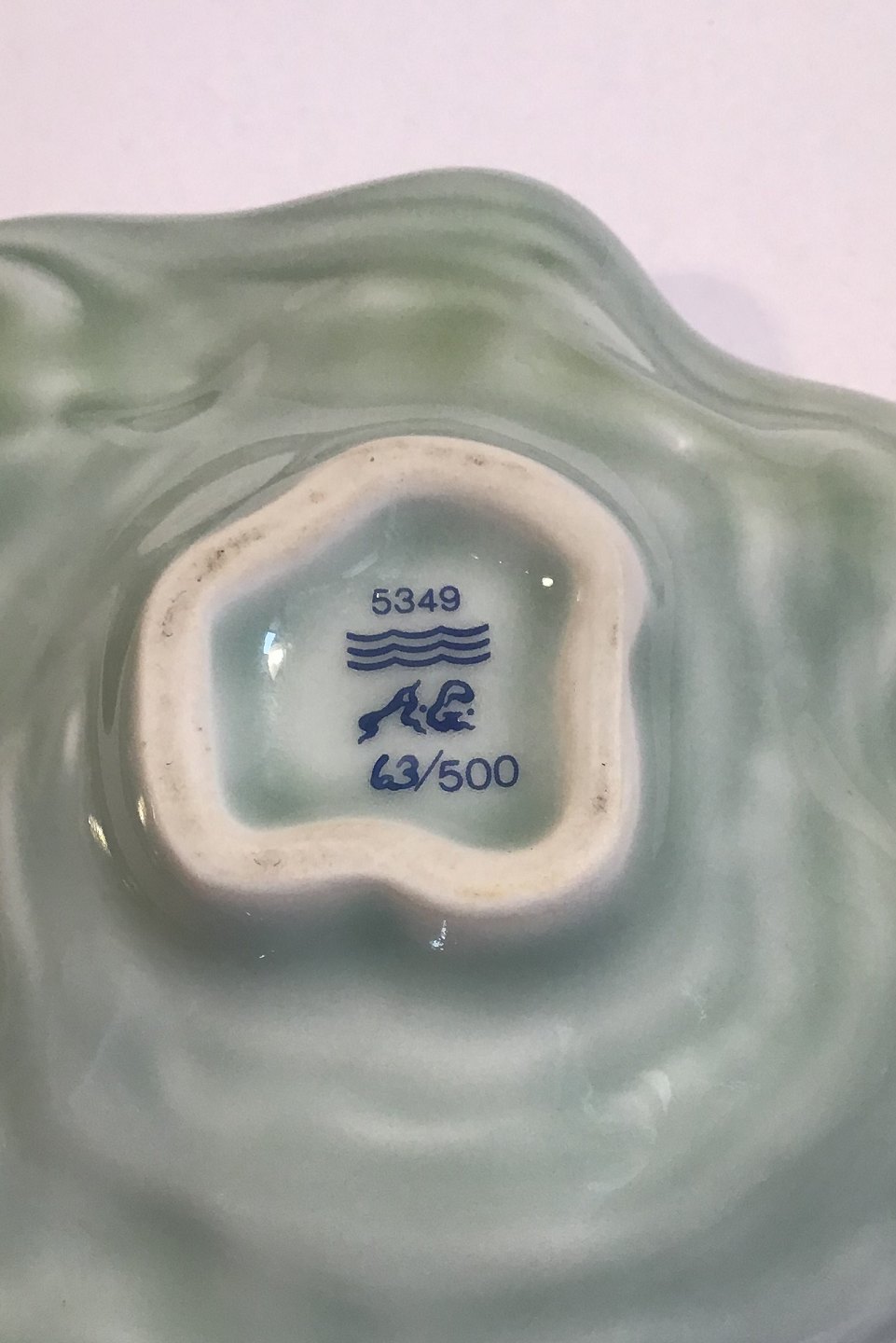 Royal Copenhagen Lysegrøn Konkylie Skål No. 5349 Limited Edition No. 63/500. 15 cm Ø. 4.5 cm H. I fin hel stand. Designet af Arje Griegst