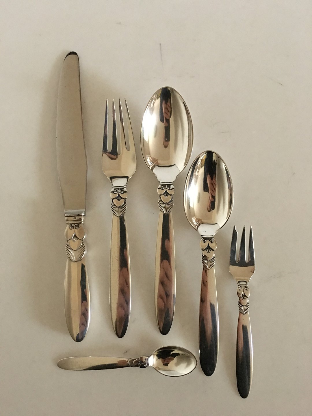 Georg Jensen Sterling Sølv Kaktus Bestik Sæt til 12 Pers. 72 dele. Design af Gundorph Albertus 1930.
