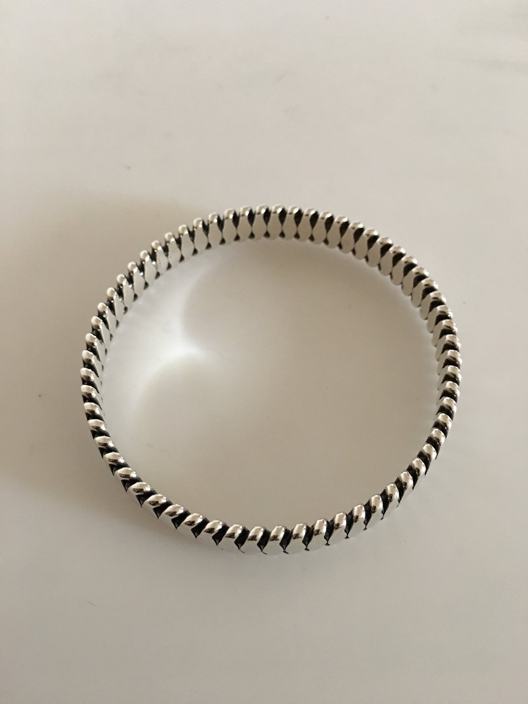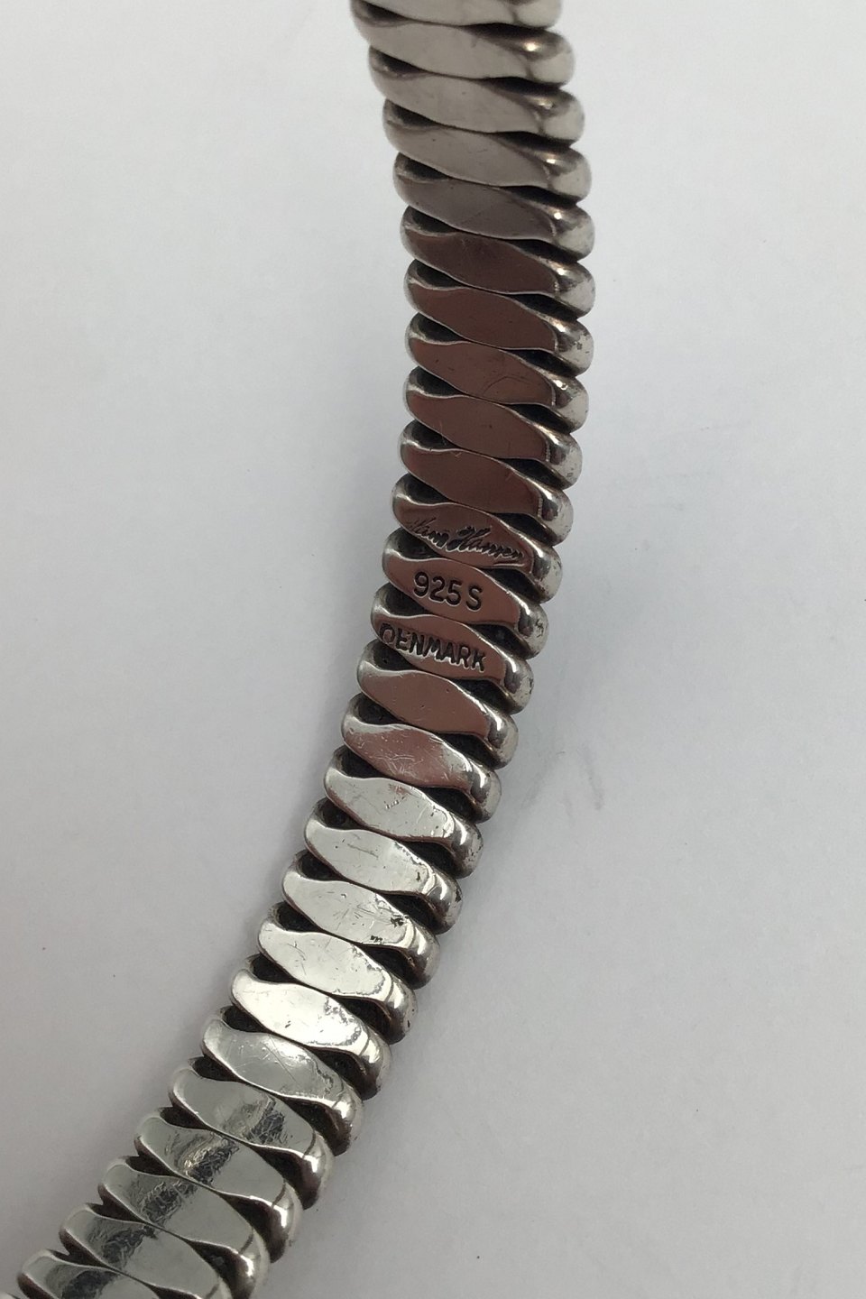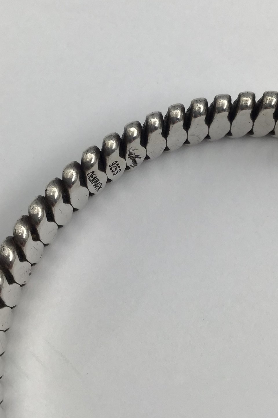 Hans Hansen Sterling Sølv Armbånd (No. 202) Måler Indvendig diameter 6,3 cm, (2.48 inch) Bredde 1 cm. (0.39 inch) Vejer 47.4 gr(1.67 oz)