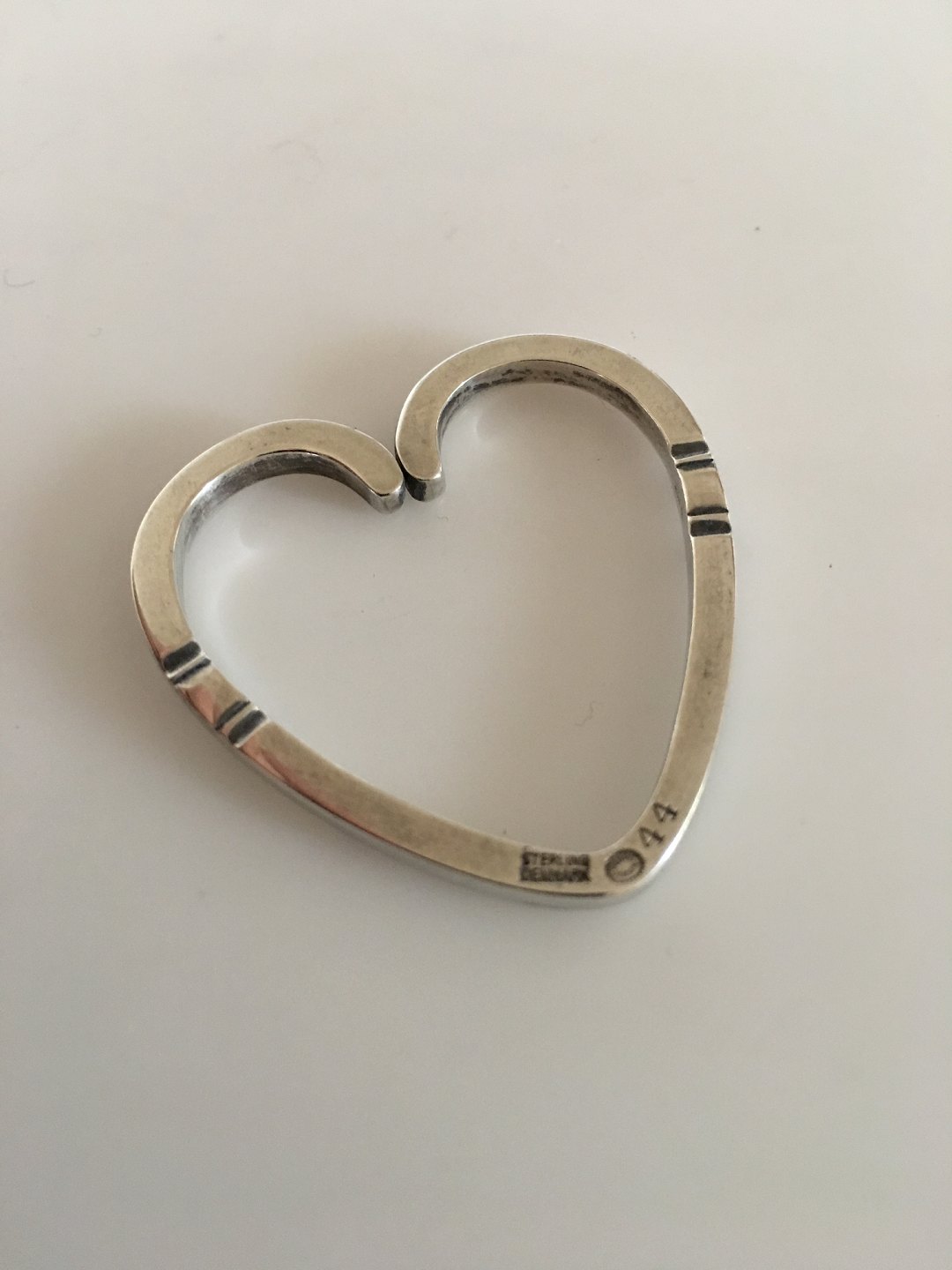 Georg Jensen Sterling Sølv Hjerteformet Nøgle/Tørklædering No. 44. Måler 3.8 cm. Vejer 8 gram. Produceret efter 1945.