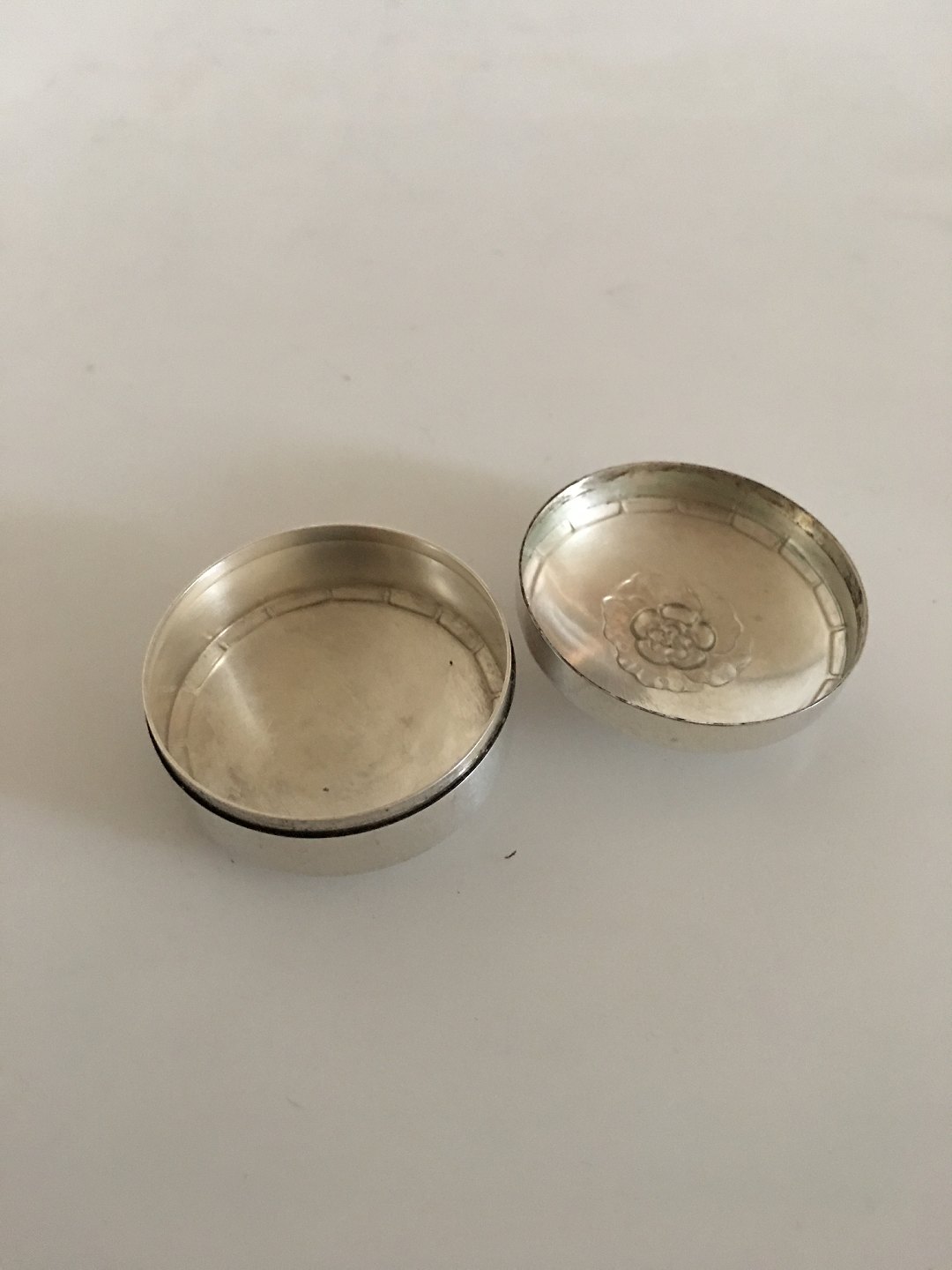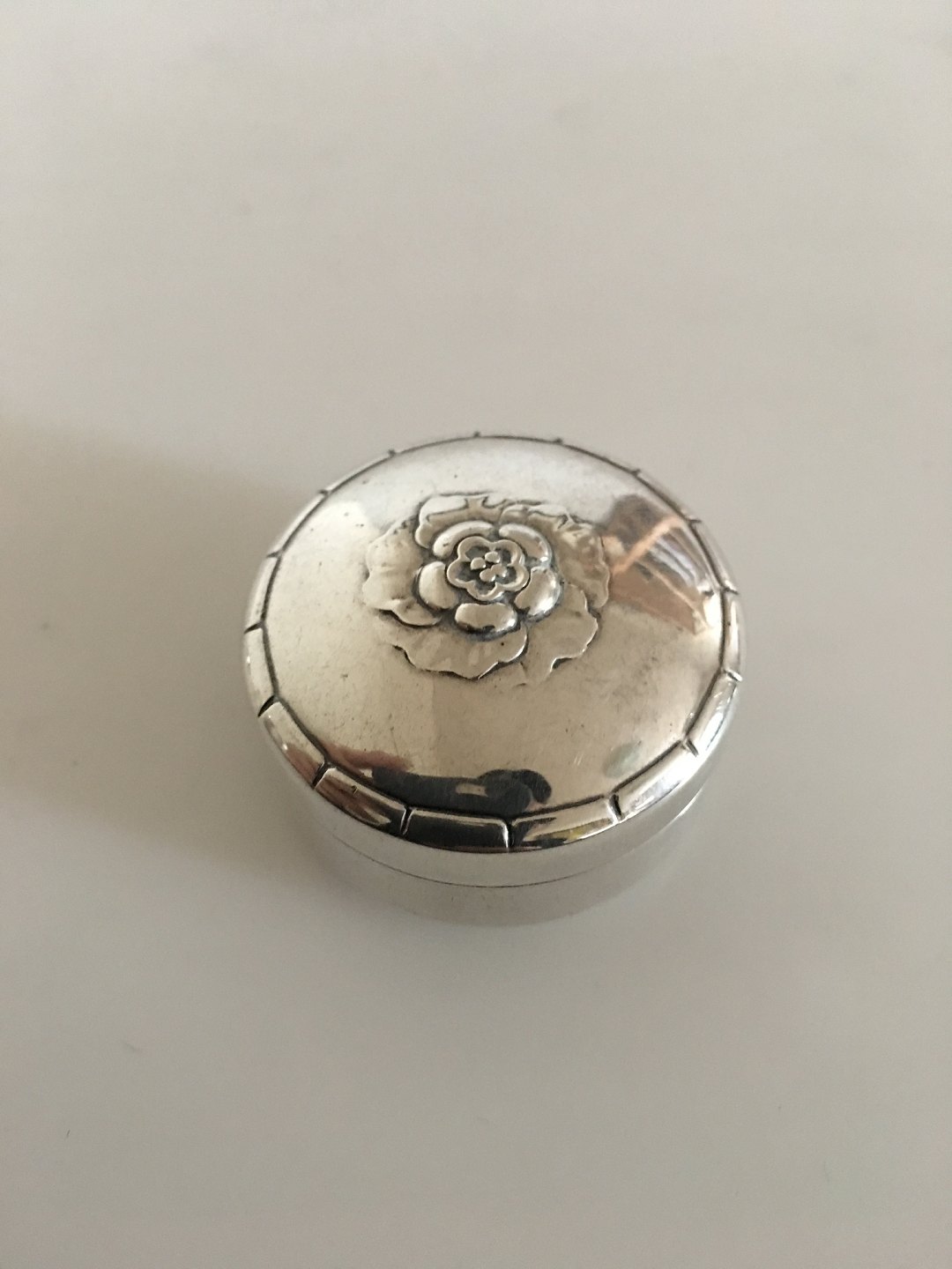 Georg Jensen Sterling Sølv Pilleæske No. 79G med Roset på Toppen. Måler 3.7 cm diameter. Ca. 2 cm Høj. Vejer 22 gram.