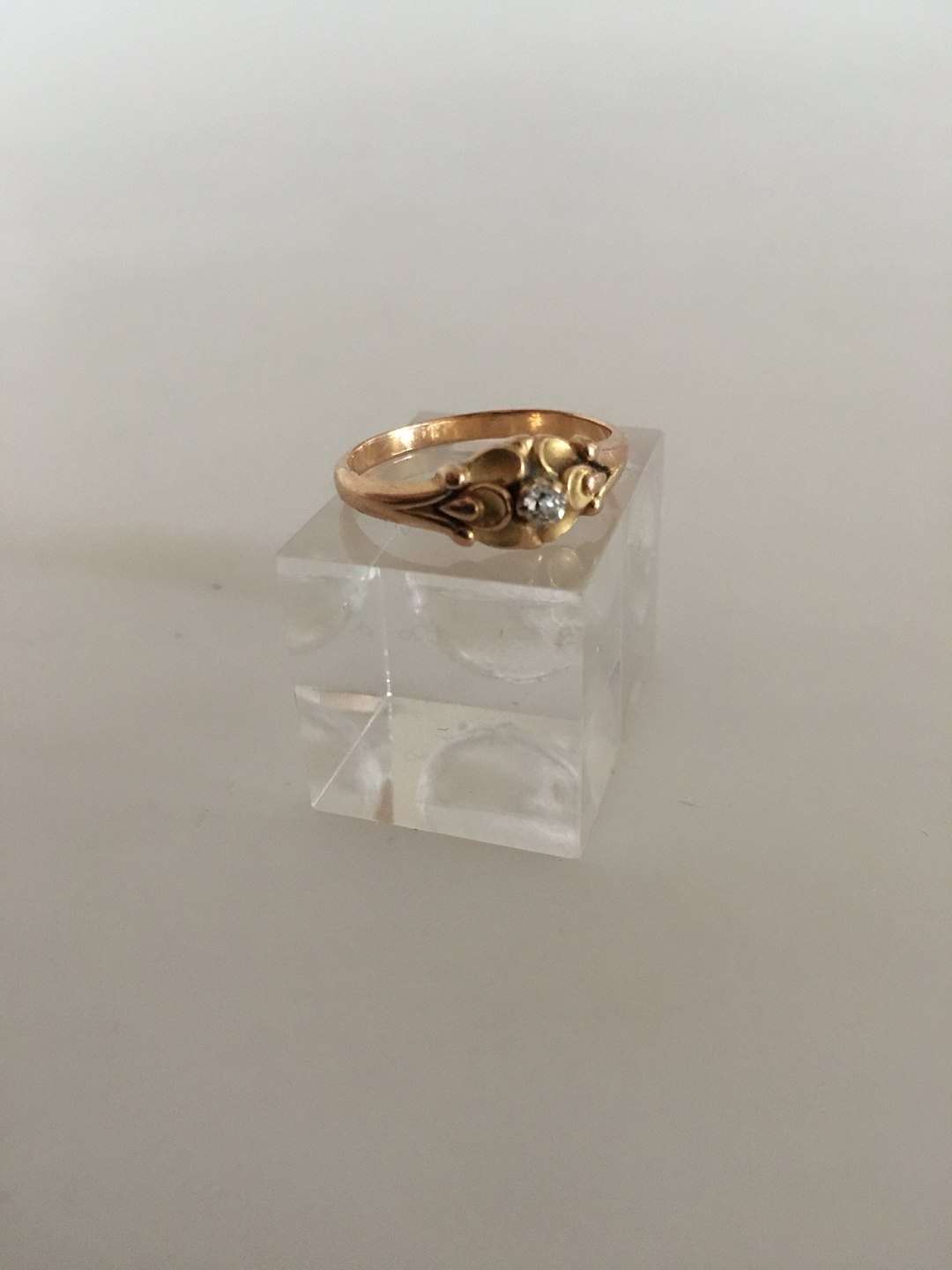 Georg Jensen & Wendel 18K Guld Ring No. 234 med Diamant. Str. 55. Vejer 5 gram. Fra 1945-1952