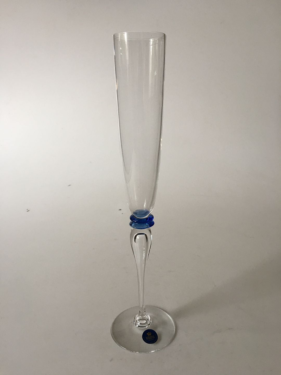 Attica Champagne Glas. Holmegaard. 29 cm H. Glat Kumme. Design Anja Kjær 1989.
