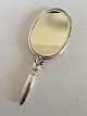 Georg Jensen Sterling Silver Hand Mirror No. 172 D. Measures 29 cm L (11 27/64"). 11.5 cm diameter (4 17/32"). Weighs 406 grams. In good condition. The glass i a but loose.