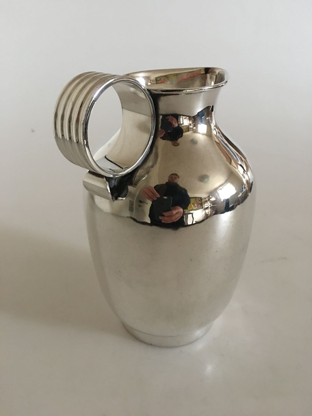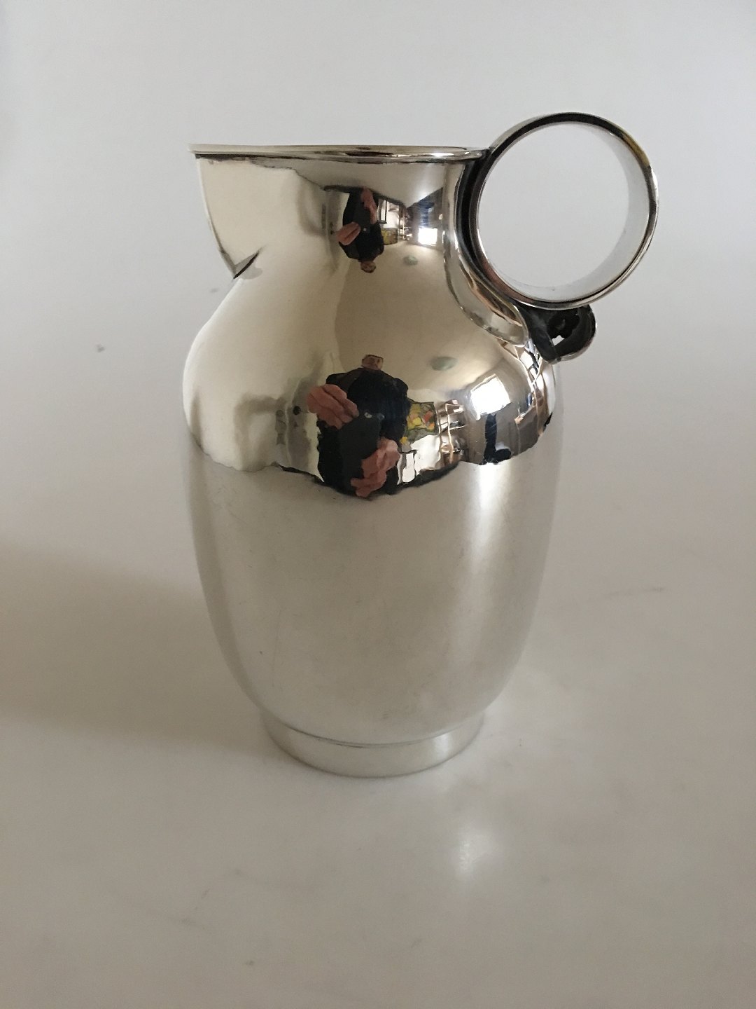 Georg Jensen Sterling Silver Jug with Round Handle No. 744 by Gustav Pedersen. 16.5 cm H (6 1/2"). Weighs 461 grams. Manufactured after 1945.