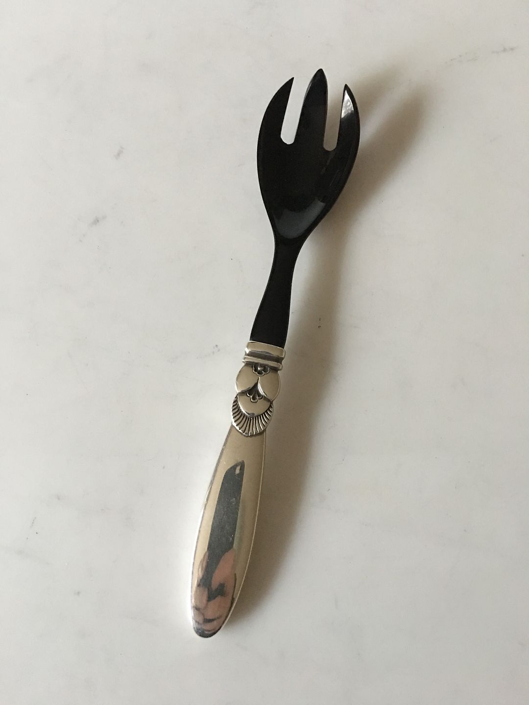 Georg Jensen Cactus Sterling Silver Fork with Black Plastic. Measures 16.3 cm / 6 27/64"