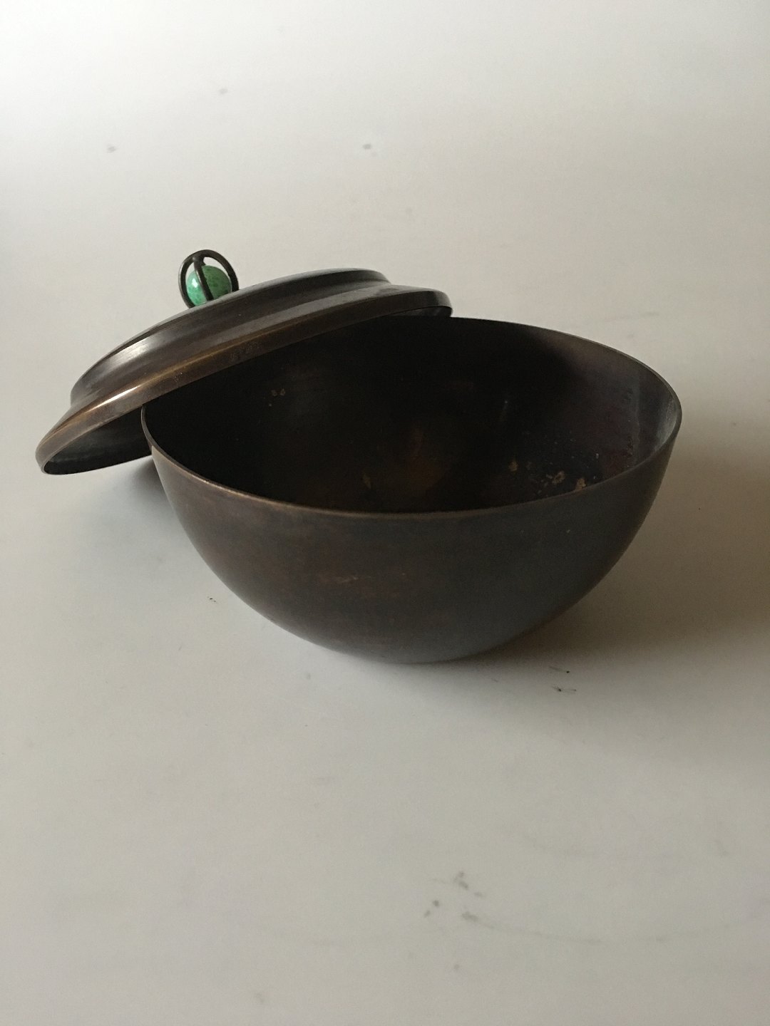 CHR R. Ægte Bronze Låg Skål med Grøn Glassten. 10.5 cm Ø. I pæn stand.