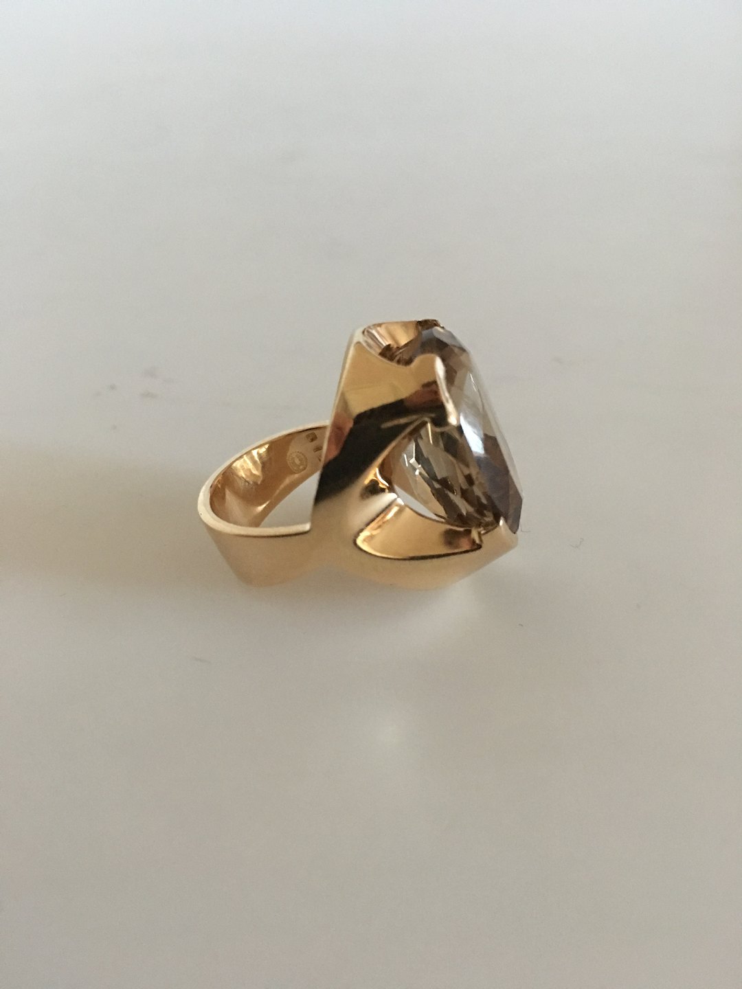 Georg Jensen 18K Guld Ring No 812 med Røgfarvet Quartz. Ringstørrelse 50. Vejer 12,6 gram. Fra efter 1945.