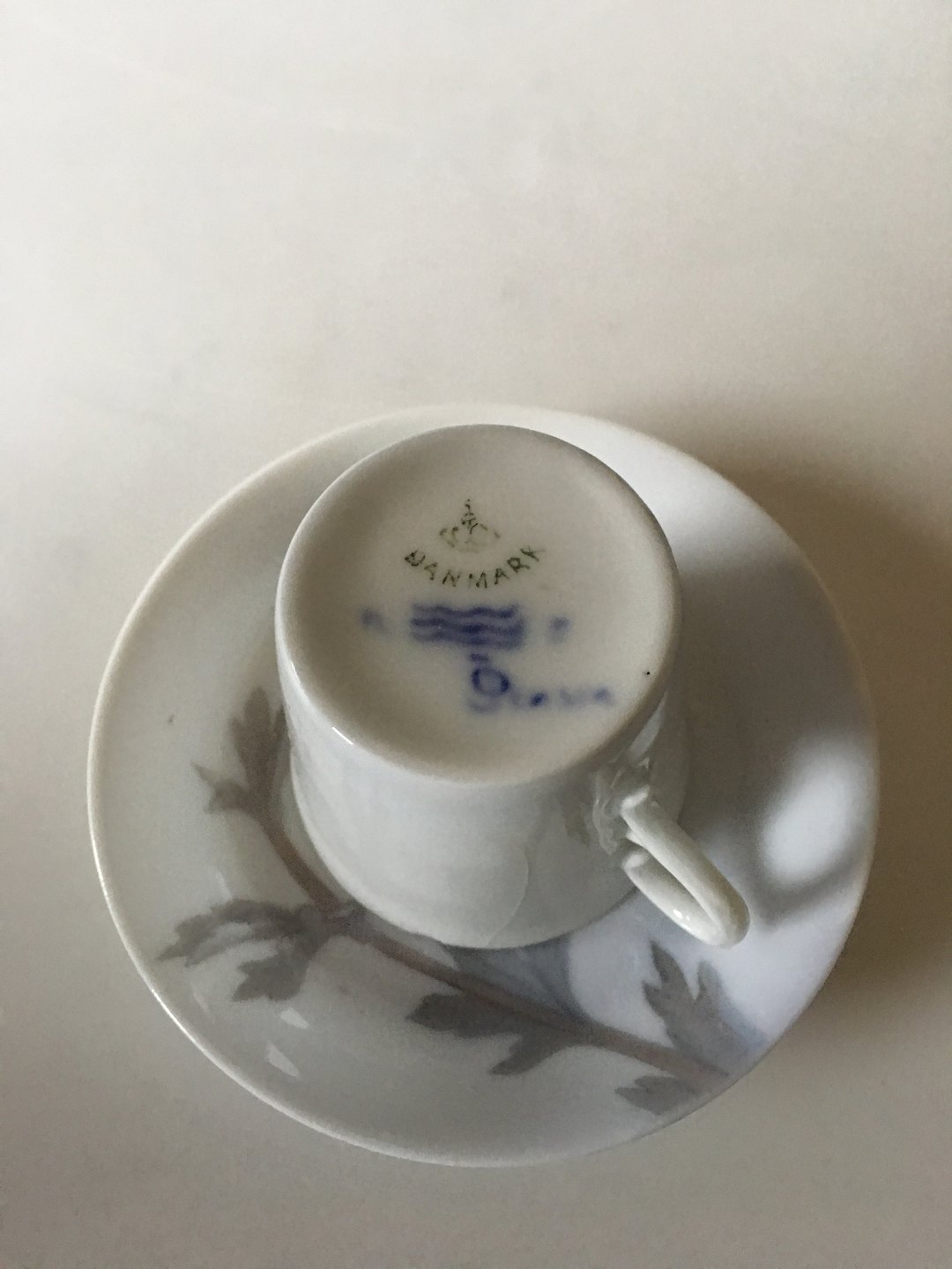Royal Copenhagen Art Nouveau Mokka Kop med Underkop. Koppen har to Hårrevner og et lille skår på kanten. Underkoppen i fin hel stand. Kop måler 5.2 cm H. 5.8 cm dia.
