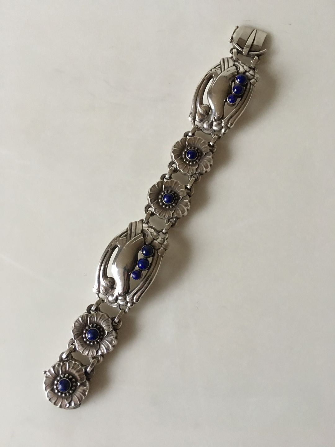 Georg Jensen Sterling Sølv Armbånd No. 23 med Lapis Lazuli. 19 cm Lang. 2.5 cm Bred. Vejer 46 gram. Eksemplar fra efter 1945.