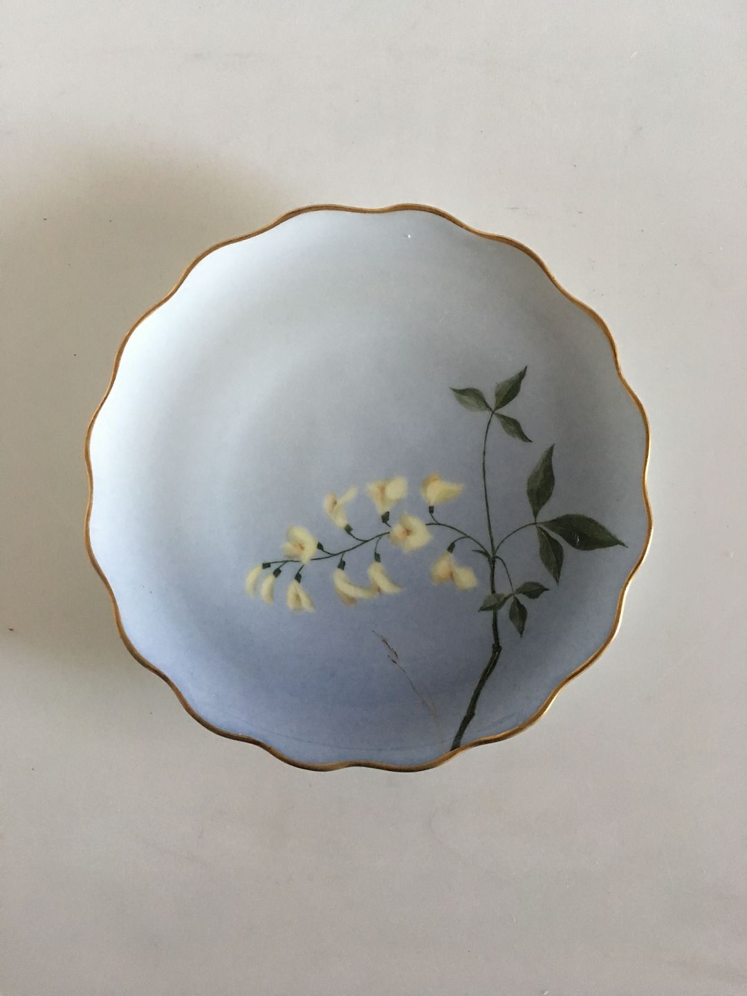 Bing & Grøndahl Kagetallerken med Blomsterdekoration og Guldkant. 17 cm diameter