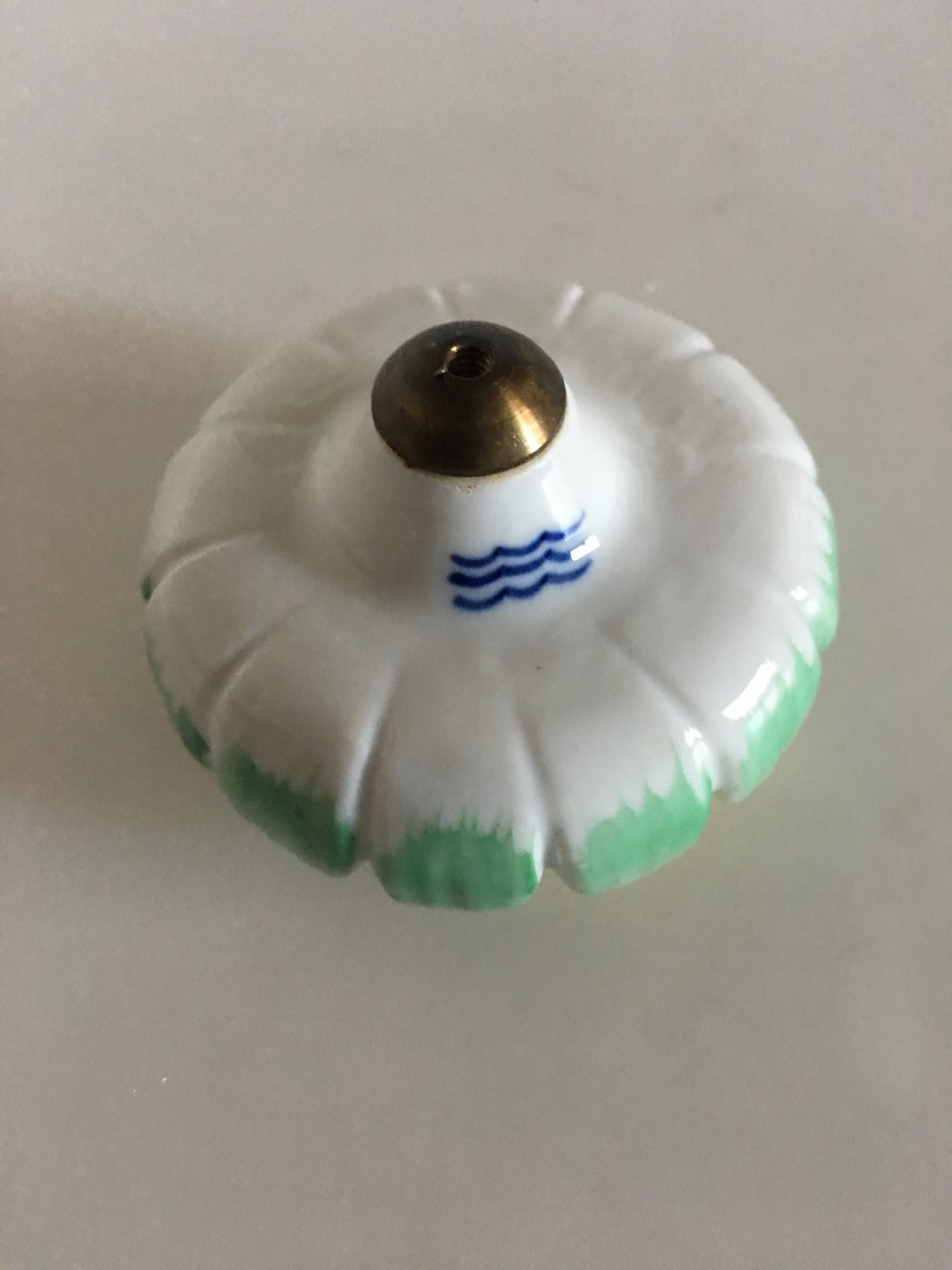 Royal Copenhagen Gul / Grøn Porcelæns Blomst. Har oprindeligt siddet som dekoration på en lysekrone. Måler 6.5 cm diameter og er fin hel stand.