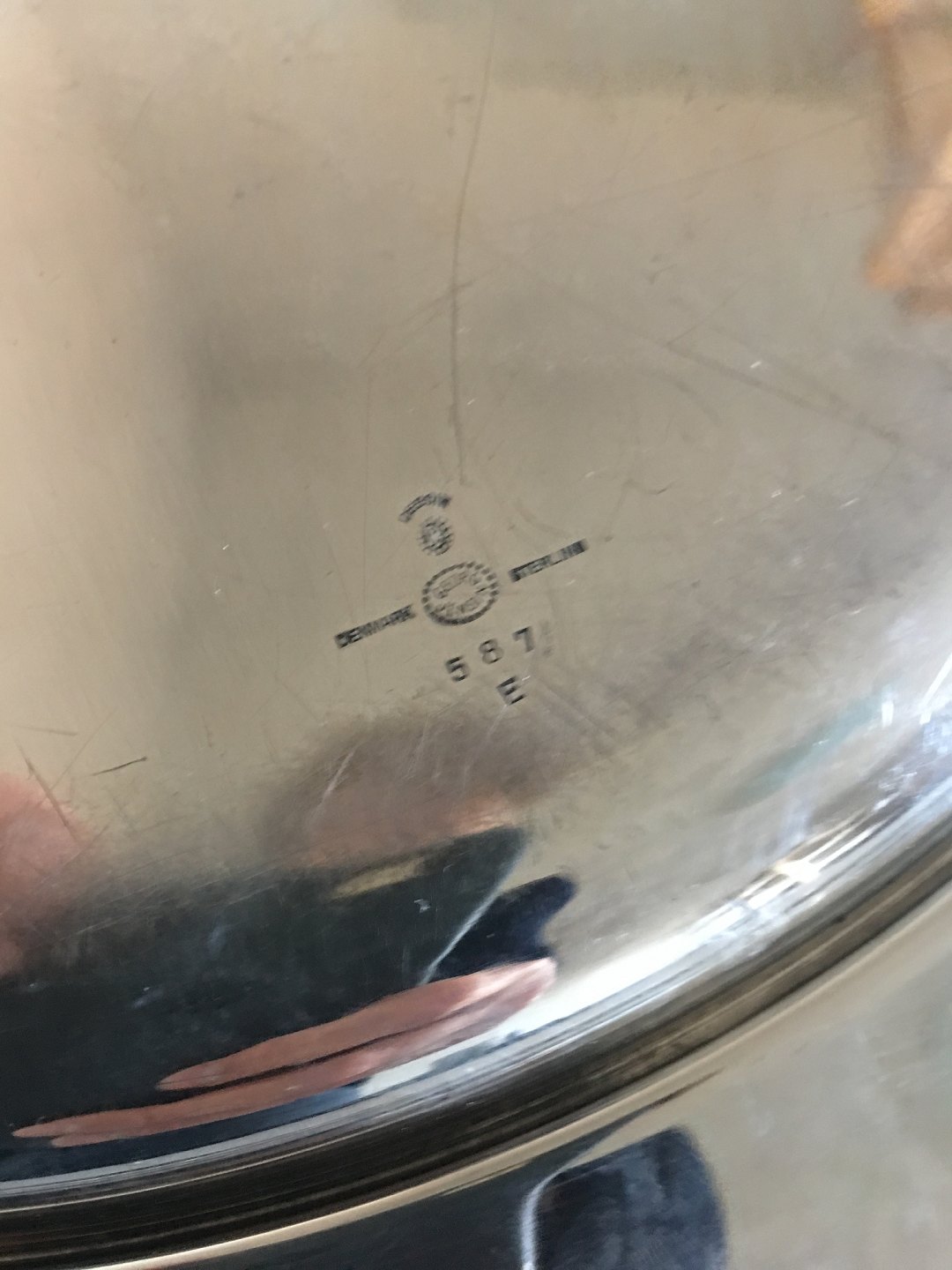 Georg Jensen Sterling Sølv Bakke No. 587 E. Design Johan Rohde. 40 cm diameter. Vejer 1496 gram. Fra efter 1945.